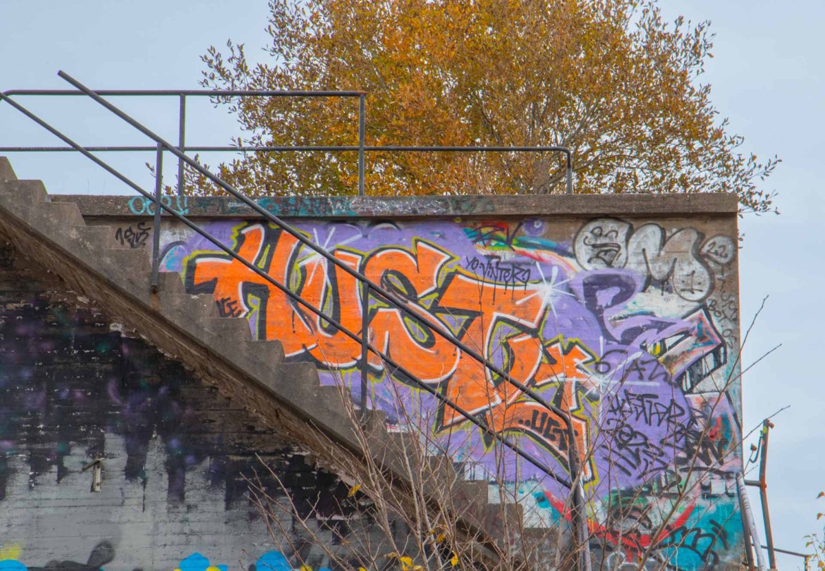Ett mycket annorlunda landskap lämnades kvar där bakom med underjordiska gångar, trappor rakt ut i intet och hundratals meter betongväggar. Detta har sedan dess lockat graffitimålare från hela landet och om platsens vara eller icke vara finns det många åsikter. Vi brukar gilla Street Art så visst var vi lite nyfikna på platsen.