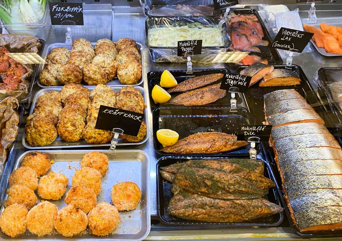 När vi kommer tillbaka till husbilen och ska börja åka hemåt har vi ytterligare ett stopp kvar. På väg mot bron stannar vi vid Rutans Delikatesser, en fabriksförsäljning med diverse godsaker. Vi har hört att de säljer goda frysta fiskbiffar och vi köpte två olika varianter av ”Havets Wallenbergare”. Dessutom fick fyra rejäla bitar torskrygg följa med. Det gick ju bra att handla frysvaror nu när vi hade husbilen med oss.