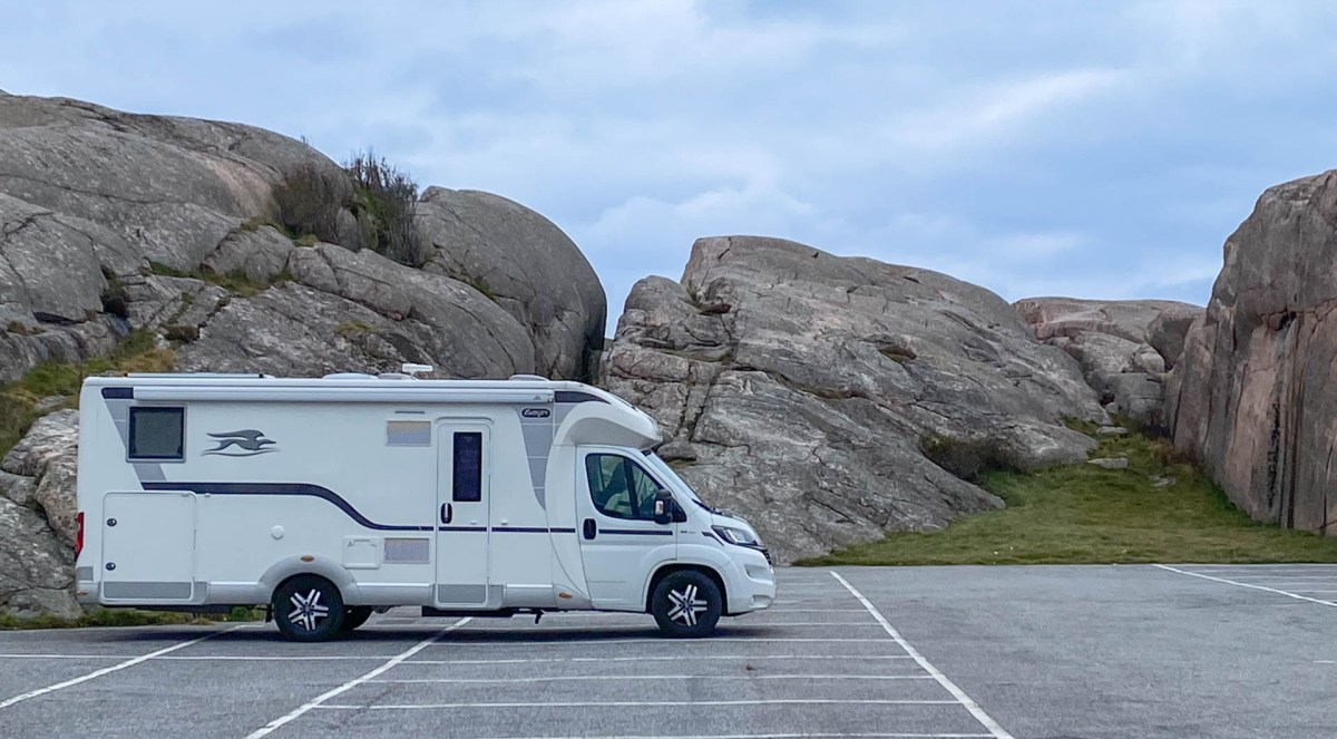 Från Malmön åker vi mot Smögen, denna västkustmetropol som är full med turister sommartid. När vi nu åker över den häftiga Smögenbron är parkeringen vid ICA nästan tom och ställplatsen bredvid var helt tom. På sommaren kostar det 38 kr/tim att parkera på orten och fram till 31 augusti är det förbjudet att övernatta på parkeringar. Så här års är det däremot gratis att övernatta på de flesta parkeringar så vi väljer parkeringen vid bron ut till Kleven som nattplats. En tysk husbil står här när vi kommer men fram emot kvällen blir vi själva här. Här står vi ganska skyddat och utsikten består av en rejäl granitvägg.