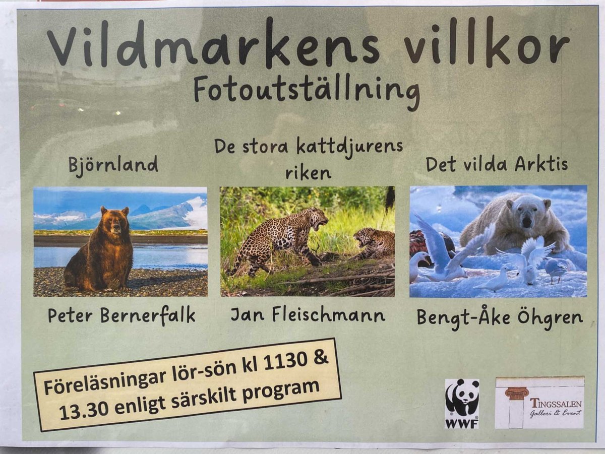 I lördags var det invigning för en ny fotoutställning på Tingssalen Galleri & Event i Mariestad. Den här utställningen heter ”Vildmarkens villkor” . Det är tre duktiga fotografer som visar sina vackra foton och dessutom håller föreläsningar, så naturligtvis ville vi åka dit och titta.