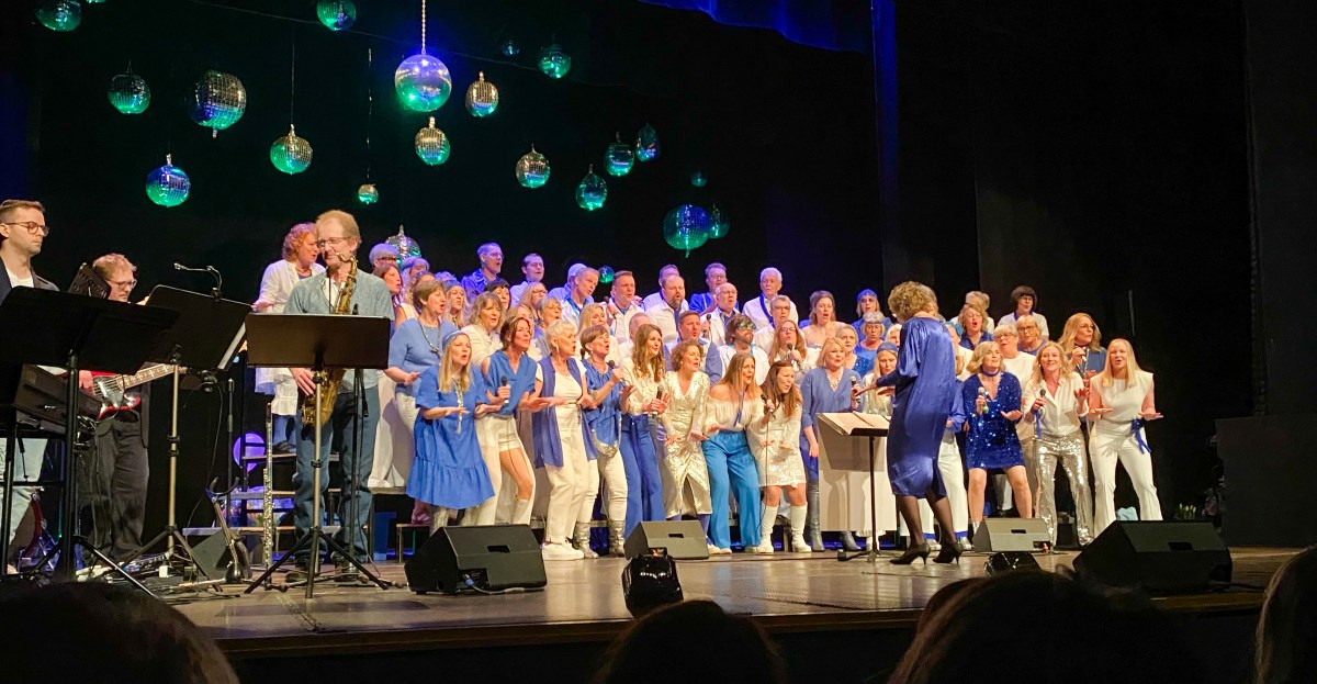 På kvällen hade vi blivit erbjudna biljetter till Falköpings Sångsällskaps hyllning till ABBA, på dagen 50 år efter segern i Brighton. Det var verkligen duktiga amatörer så vi fick två timmars musikalisk njutning i en fullsatt teatersalong.