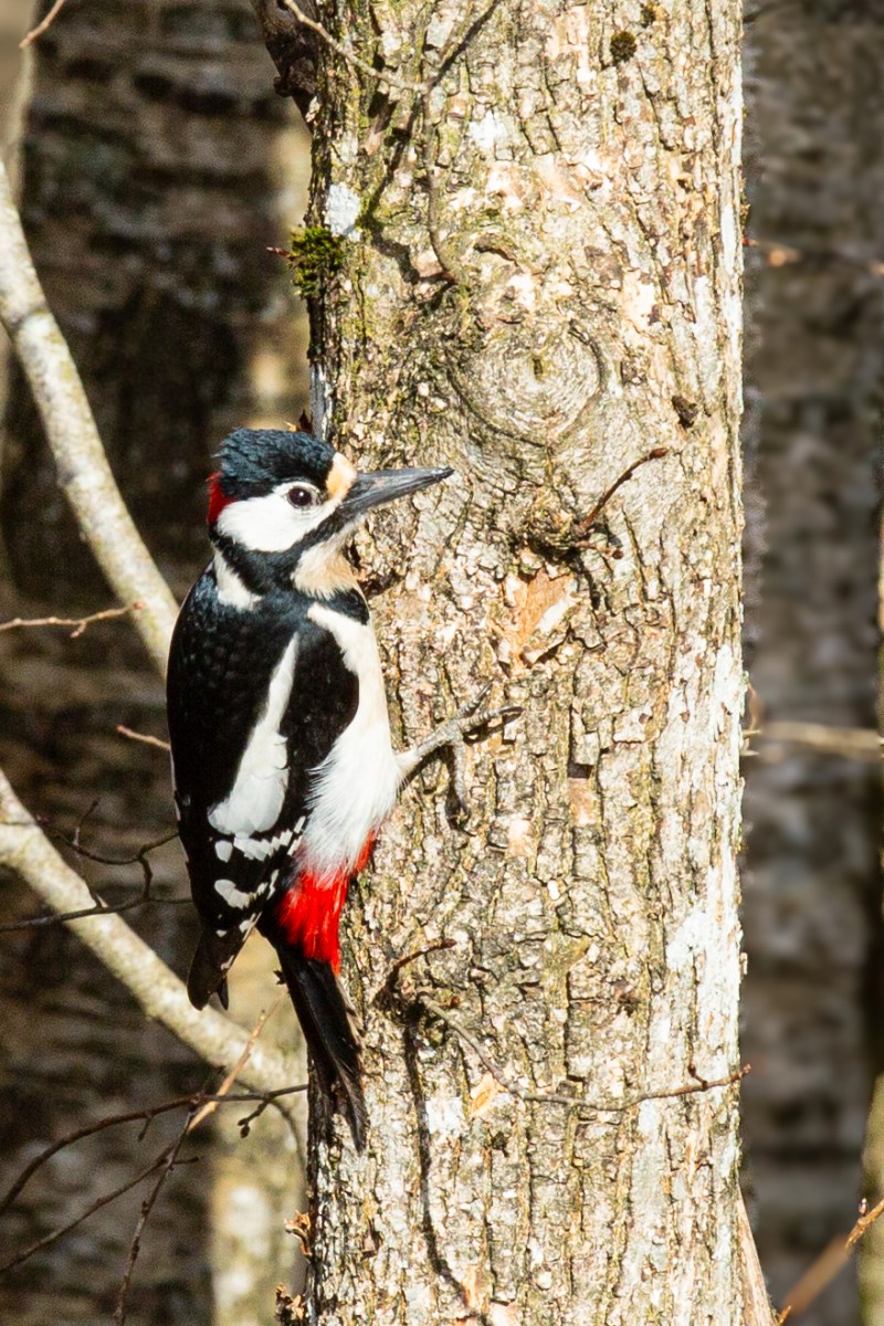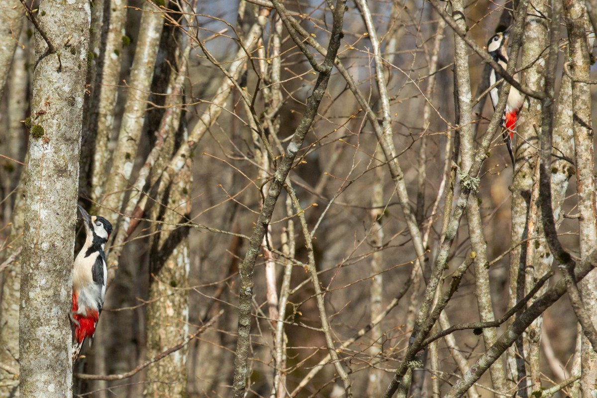 Vi träffade ett par som hela vintern försett småfåglarna med mat. Det visade sig att det också brukar komma fram ett par hungriga ekorrar och förse sig av nötter och andra godsaker. Idag fick vi inte se dem, men bland blåmesar, gråsiskor och andra småfåglar fick vi njuta av ett par hackspettar, som höll sig hyfsat nära stigen, så länge vi inte gjorde några onödiga rörelser. Här blev det ett långt stopp och många foton på minneskortet.