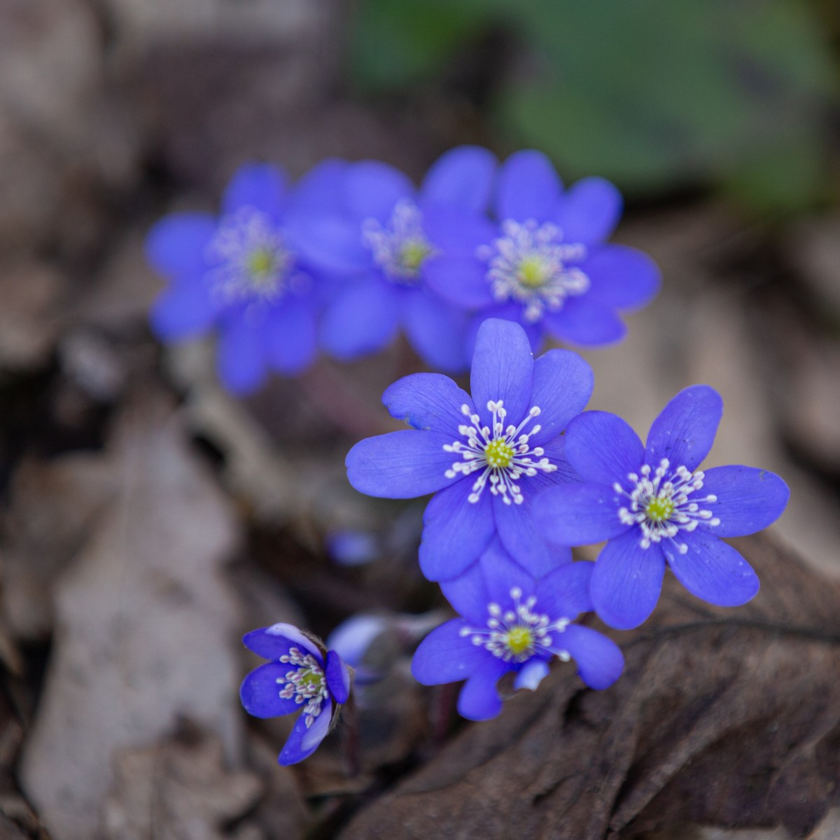 När vi vaknade i måndags kändes det verkligen att nu var våren här. Söndagens regn hade gjort att all snö som föll i förra veckan var borta och termometern visade många härliga plusgrader. Vad passar då bättre än en promenad på Ålleberg, där en av stigarna är anpassad och förhoppningsvis inte översvämmad av smält vatten. Här hoppades vi få se några av vårens budbärare, blåsipporna och bönhörda blev vi verkligen. Det lyste blått nästan överallt bland de bruna fjolårslöven och det blev oräkneliga stopp längs stigen. De är så otroligt vackra när man tittar på dem på närmare håll.