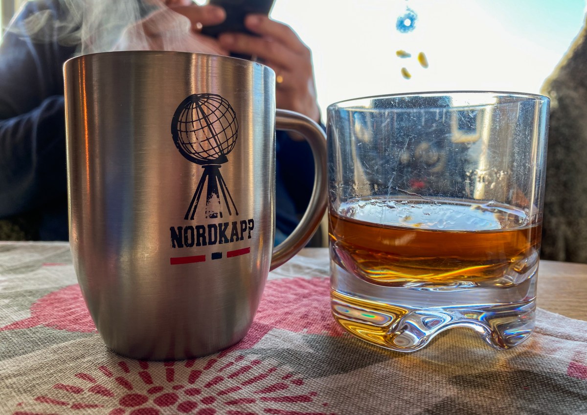 Nu var det ingen trängsel där och vi blev totalt fyra husbilar där över natten. Eftersom vi kom fram på eftermiddagen byttes ”komma-fram-ölen” mot kaffe och en liten whisky, nog så gott.