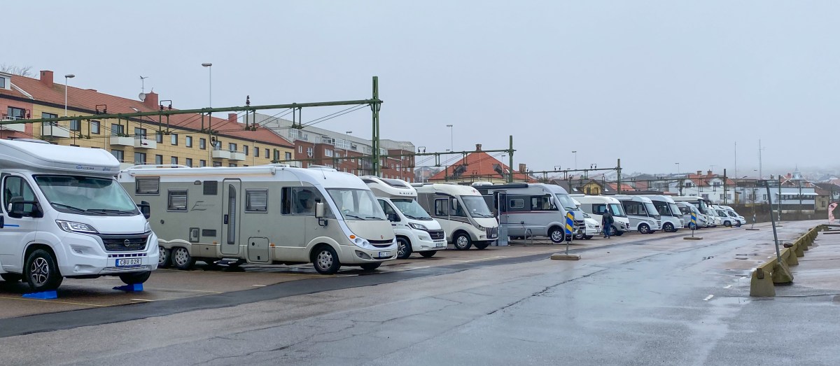 Efter sju sorger och åtta bedrövelser, eller rättare sagt en värme som inte fungerar, trubbel med dieseltanken (möss för andra gången… GRR) så det väntar ombesiktning, service och kamremsbyte var det i torsdags äntligen dags för årets premiärtur. Vi hade bestämt träff med Yvonne och Jakob ( med bloggen JoYtillsammans) på ställplatsen i Valbodalens småbåtshamn. Ställplatsen ligger ett par km innan Lysekil och vi har bara varit framme och tittat där med personbil men tyckte då att det såg så trevligt ut. Nu låg det naturligtvis massor med båtar kvar på land men sommartid ska det enligt appen Park4night finnas 57 platser. Det mesta i service utom tömning av gråvatten finns. Gråvatten får tömmas vid en ny fräsch servicestation vid ställplatsen vid Kolholmarna. I år kostar det 260 kr/ natt på alla Lysekils ställplatser och det betalas lätt via mobilen.