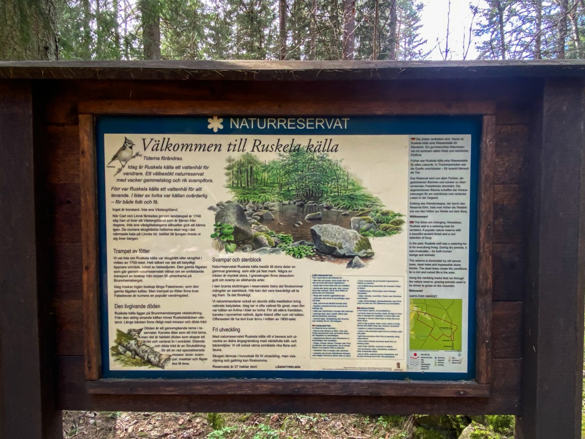 Dreven tar slut vid Ruskela källa, där det idag är naturreservat. Här möttes tre socknar som kom överens om att källan skulle ligga på en allmänning så att alla skulle ha tillgång till vattnet, när brunnarna vid torpen ibland sinade under torktider. Källan springer ur berget och sinar aldrig. Den var också känd för att vara hälsobringande.