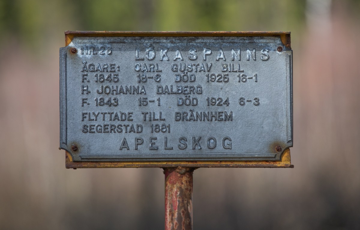Det som är skoj är att vid alla boplatser finns idag en metallskylt, som anger vilka som bott här. Ett skojigt exempel tycker jag är den här över Lars i Nôka-Rå. I min barndom fanns i byn en man som sa just så när det var något bekymmer ”att det fanns alltid något råd, nôket rå, (lösning)”.
