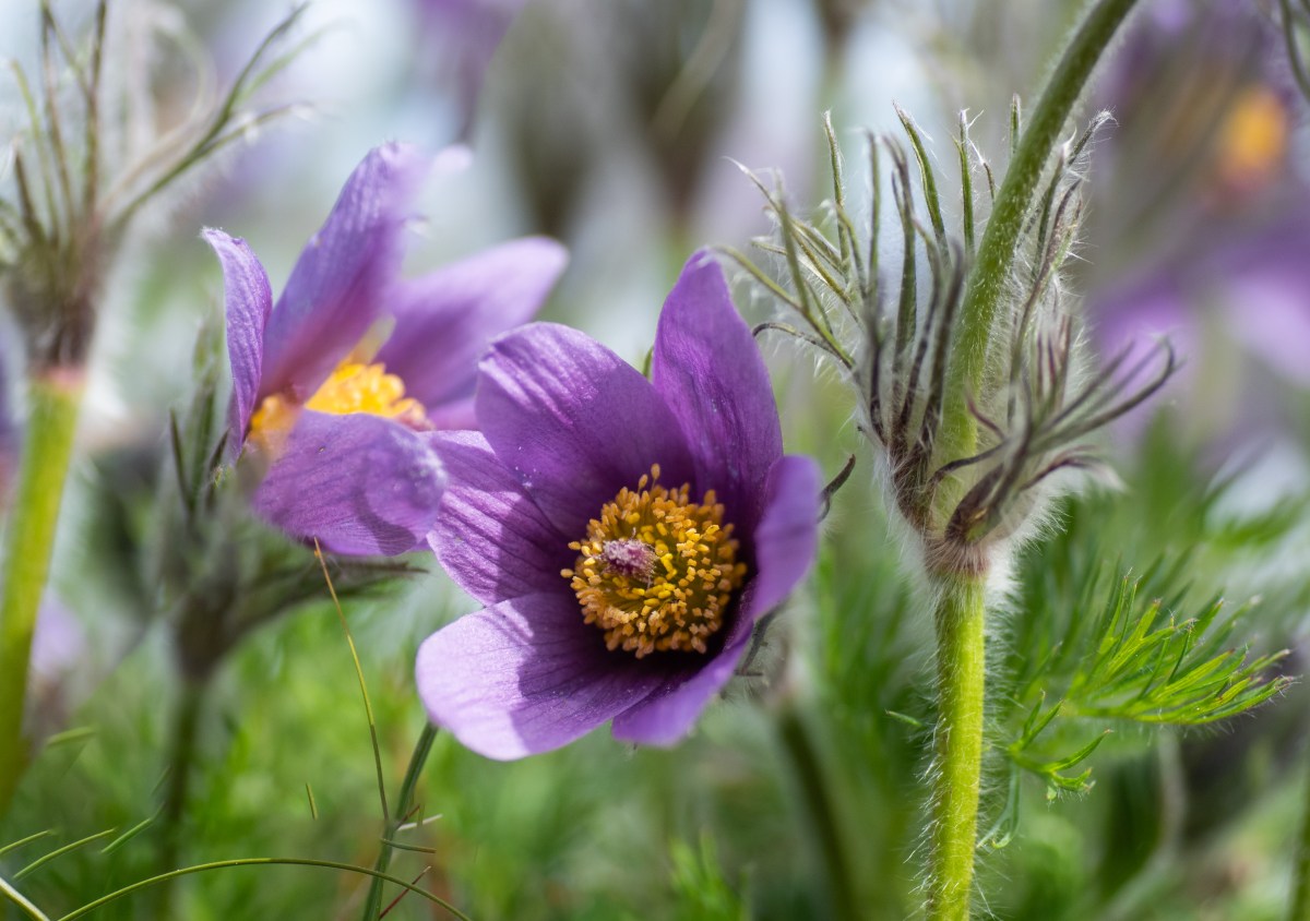 Vi fortsätter tillbaka till Naturum och går ner på ängen nedanför där backsipporna är på gränsen till utblommade men än finns några lila skönheter kvar. Snart kommer ängen att istället bjuda på orkidéer.