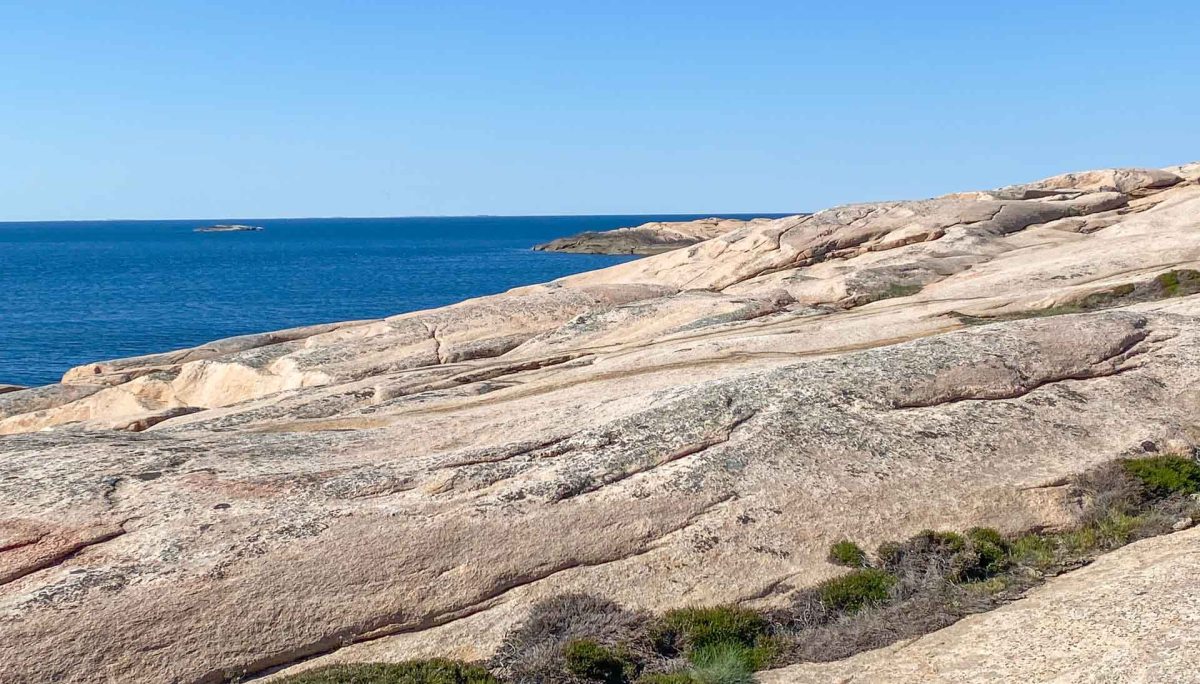 Sedan åkte vi norrut på ön till parkeringen vid Fykan. Här skulle vi gå en vandring som blev en kombination av tre olika leder. Alla är väl utmärkta med olika färger på stolpar över klipphällarna.
