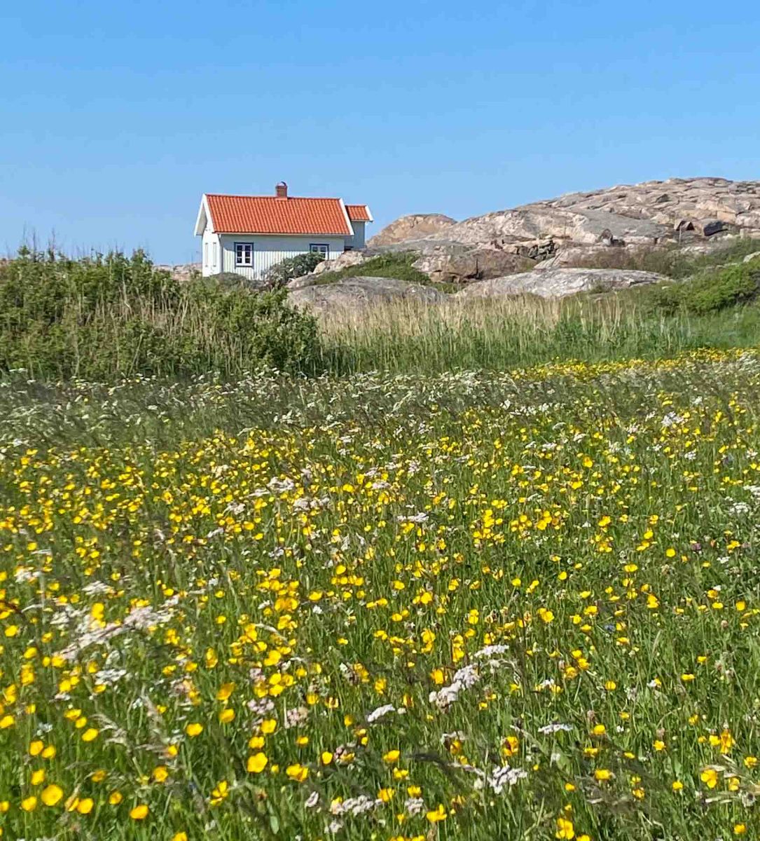 Mot slutet av vandringen passerar vi gården Fykan och den har nog ett av västkustens vackraste lägen även om vägen hit går rakt över klipporna och inte är helt enkel att ta sig fram på.