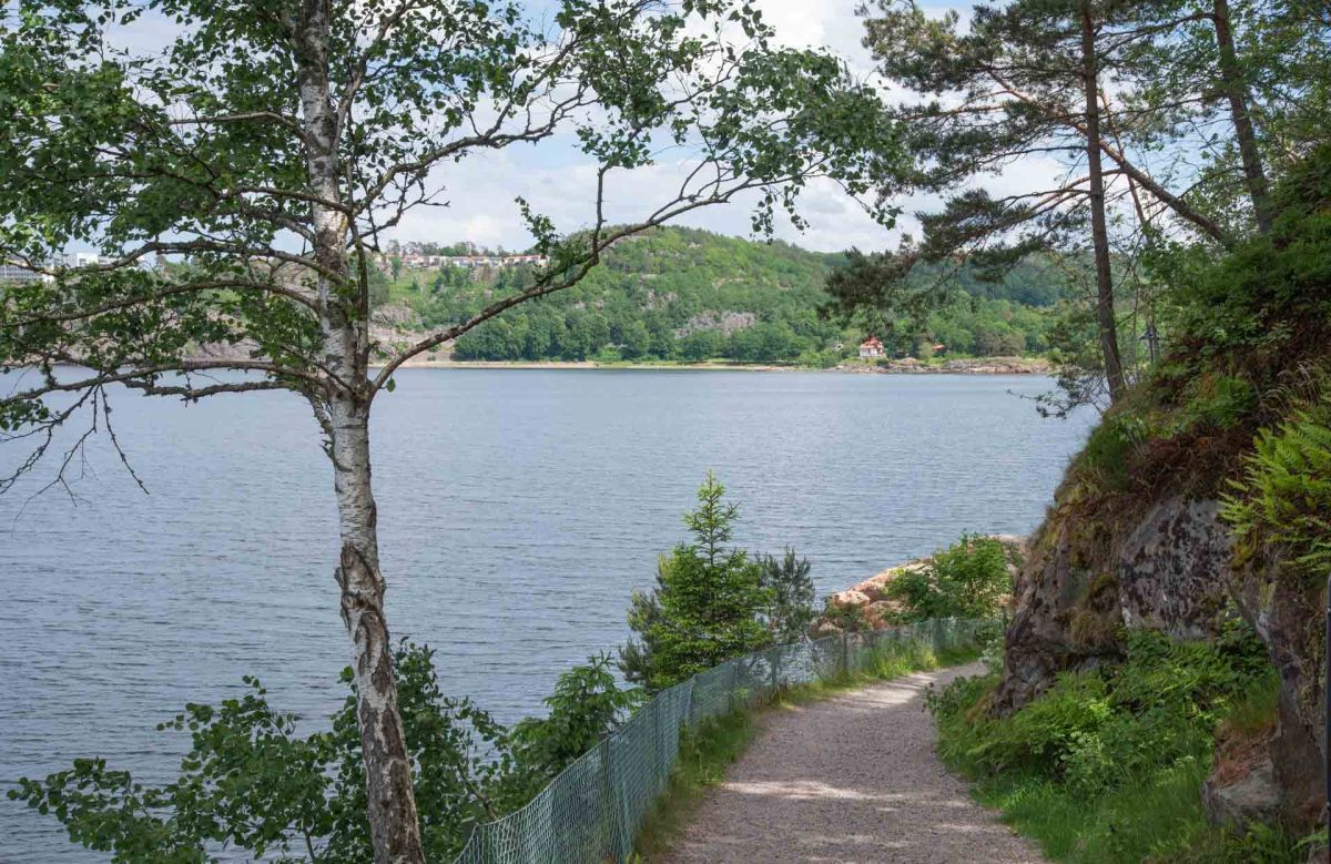 När vi rundat viken får vi en fin utsikt över de vackra ”grosshandlarvillorna” vi tidigare passerat nedanför. Där ligger de på rad; Villa Dahlgren, Villa Wolde, Villa Lillhyttan osv.