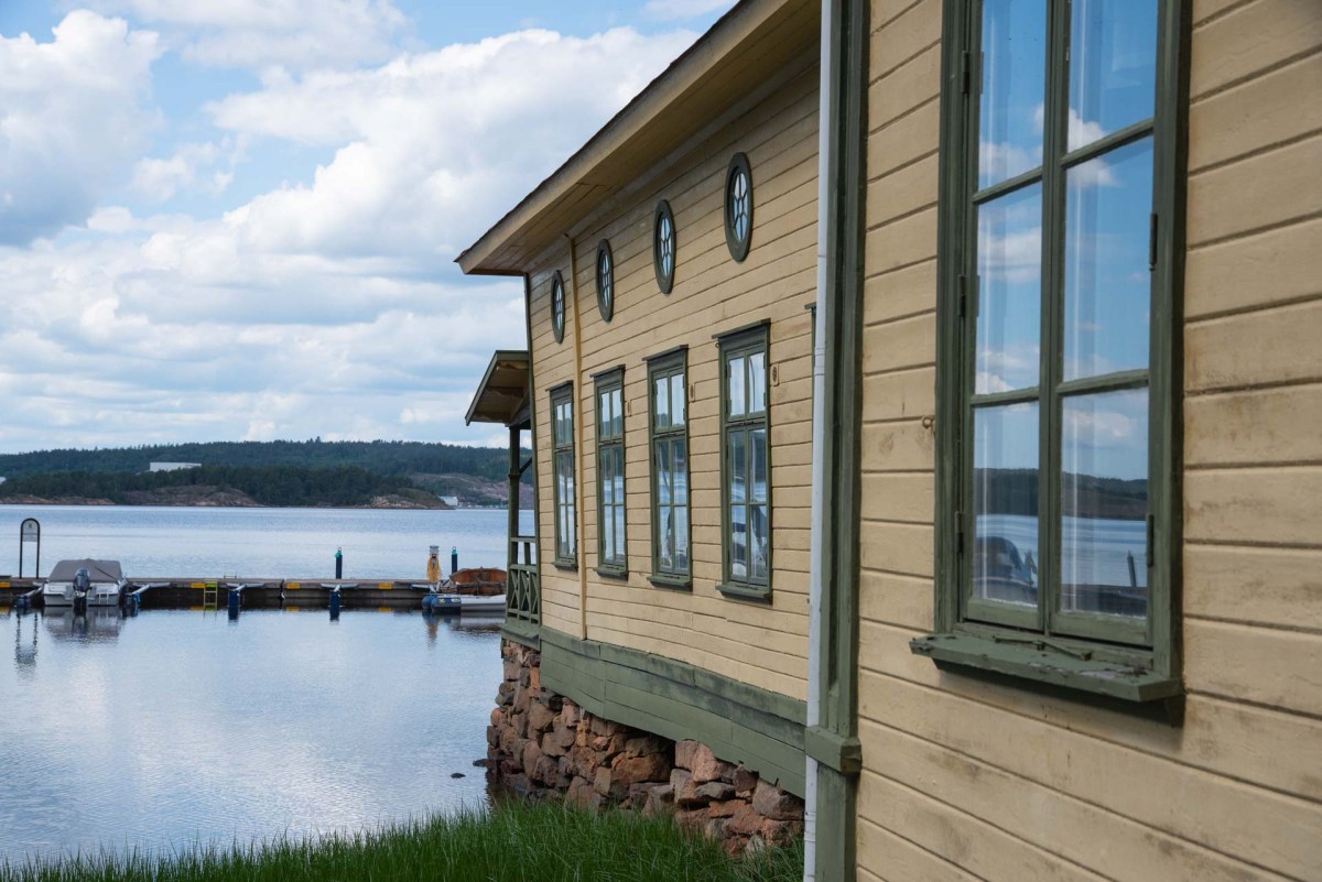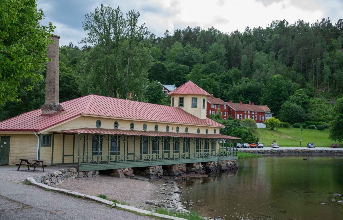 Snart skymtar vi Varmbadhuset på Gustafsberg.