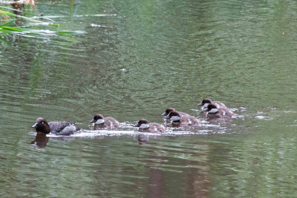 Vi ser en knipmamma ute på en simtur med de små och där hade hon en rejäl skock att hålla ordning på.