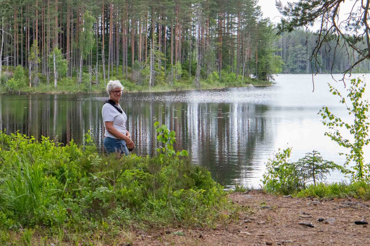 När vi lämnade Nora GK tänkte vi oss ett besök i Knuthöjdsmossens naturreservat. Vi fortsatte norrut mot Grythyttan och Hällefors och tittade samtidigt i appen Park4night efter en övernattningsplats för kvällen. Det här området är verkligen rikt på sjöar och skog, så det fanns många platser som kunde vara tänkbara. Vi fastnade för en plats som verkligen låg mitt ute i skogen och hette Silvergruvan. Koordinaterna hit är N 59 43´ 37´´ E 14 38´ 55´´. Det står att det finns två platser och när vi efter många km på en gropig grusväg, kantad med lupiner, hundkäx och andra blommor kommer dit står där en tysk husbil.
