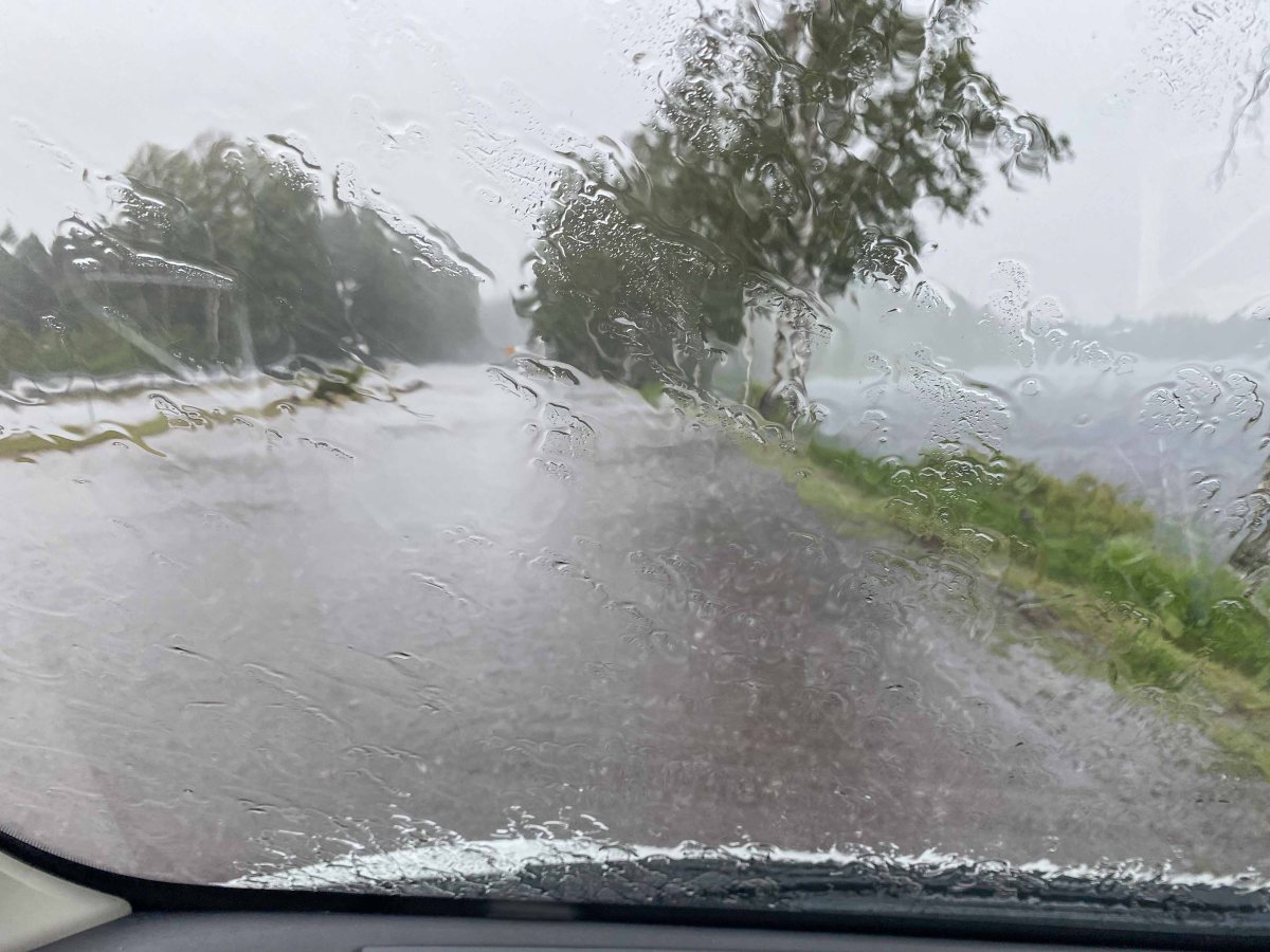 När vi lämnade Järbo åkte vi mot Hudiksvall, där vi på kvällen var bjudna på middag hos en av mina (B-M) gymnasiekamrater och hennes man, som bott här i Hudik i många år. Plötsligt blev vi överraskade av ett enormt åskväder med stormvindar så vi fick köra av på en parkering en stund.
