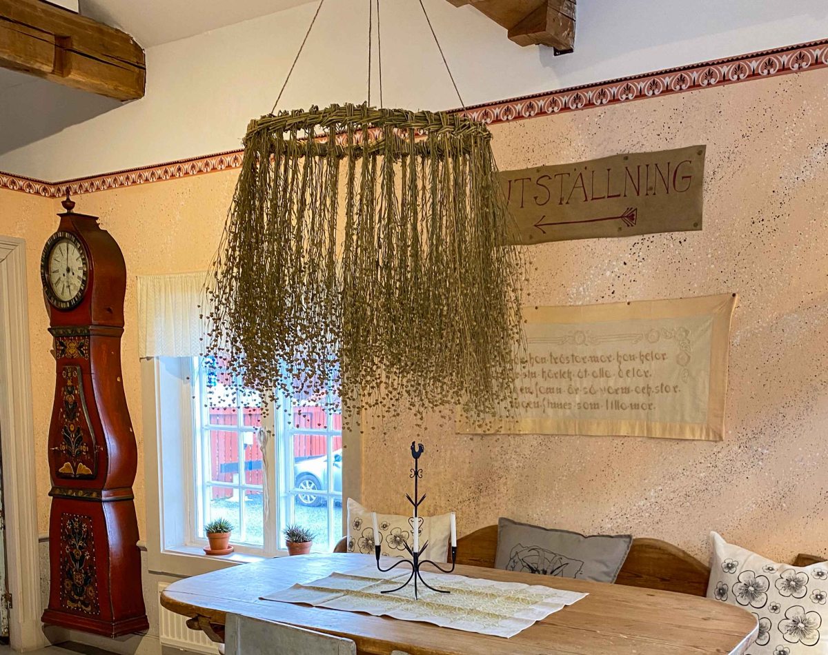Järvsö Hembygdsförening håller i en del aktiviteter här bl a det traditionella midsommarfirandet som vi nu missade och Hälsingehambon. 2013 invigdes Sveriges 15:e och senaste världsarv, Hälsingegårdarna, och samtidigt invigdes Världsarscentrum här på Stenegård. Vi besökte det och här finns en liten shop, broschyrer om de sju gårdarna som ingår i världsarvet, samt ett par iordningställda miljöer.