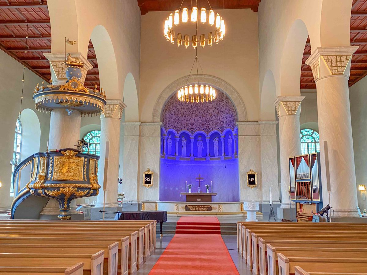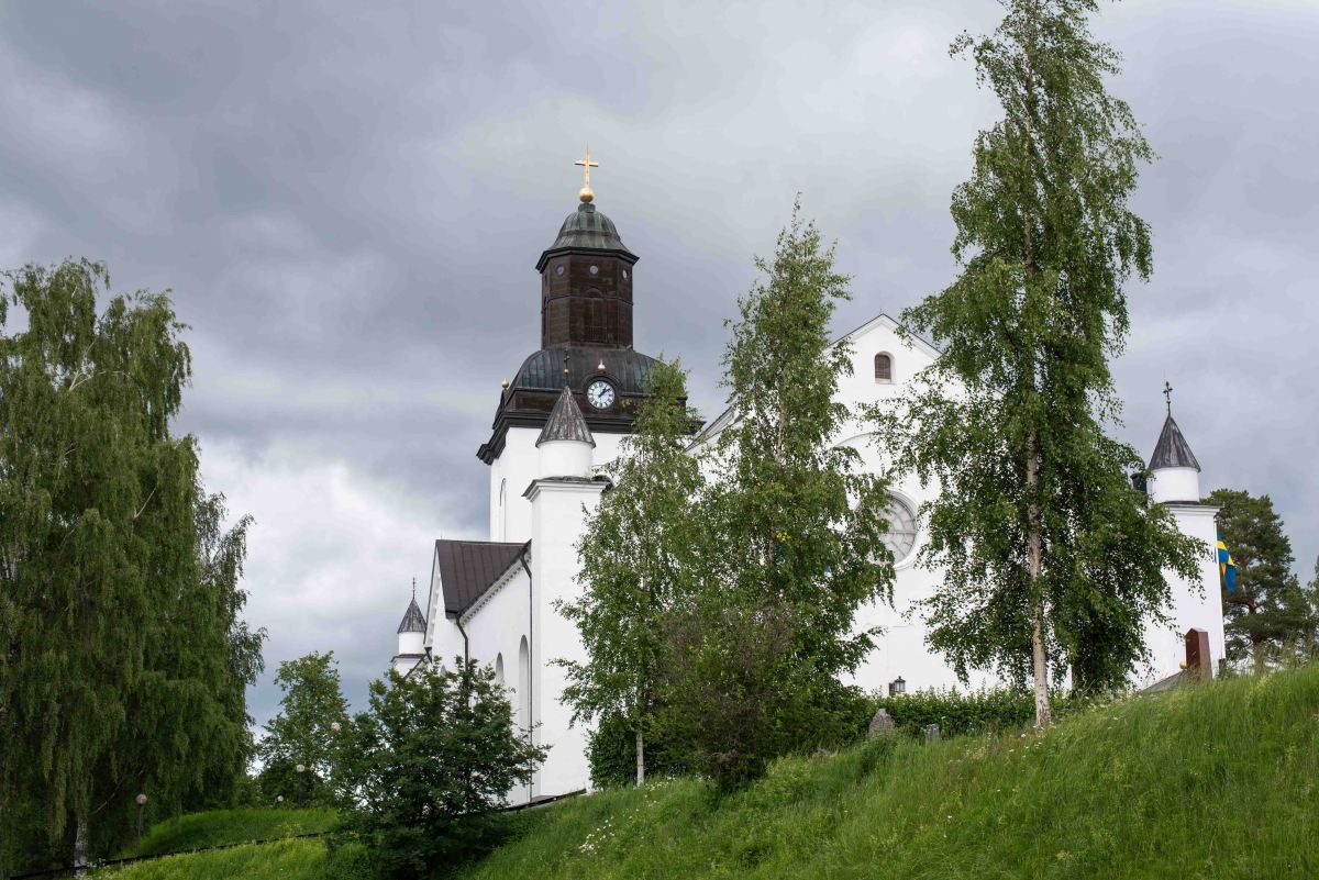 När vi sett oss nöjda på Stenegård åkte vi över Ljusnan och ut till Kyrkön där Järvsö kyrka ligger så idylliskt. Den nuvarande kyrkan stod klar 1838 och sägs vara Sveriges största landsortskyrka. Vi tyckte kyrkan var både enkel och vacker.