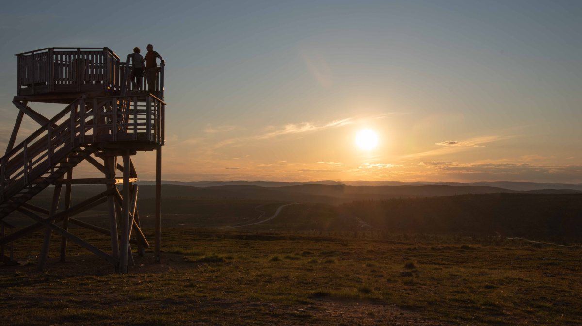 Efter lite sökande i appen Park4night enades vi om att åka upp på berget Kaunispää, där det gick att övernatta på skidrestaurangens parkering. Utsikten skulle vara 360 grader och speciellt fin vid midnattssol.