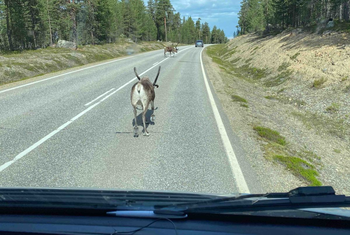 Den här gången blev Finland en transportsträcka. Nu kommer vi att hålla oss i Norge och åka västerut så sakteliga. De finska myggen var inte att leka med. Vi åkte ju rakt igenom skogarna och förbi Enare träsk. Vi stannade vid ett samemuseum men det blev ett snabbt besök och kyrkan fick vi låta bli för här var myggen enorma och då var åtminstone jag rejält insmord. Midnattssol har vi hur som helst gått njuta av för nu blir det nog heldagsregn ett par dagar…