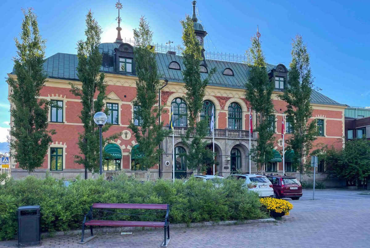 Vi går upp mot det trevliga torget och trodde att vi kunde få en glass, men är det midsommardag så är det och det enda som bjöds var donuts i en kiosk, men det ville vi inte ha. På torget ligger Haparandas vackra Stadshotell som har en spännande historia. det invigdes 1900 och här skedde många möten då Haparanda var den givna kontakten mellan länderna i väst och de stora imperierna i öst, Ryssland, Persien och Kina.
