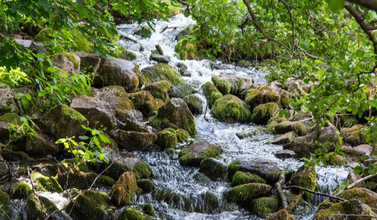 Det är en jättefin natur vi vandrar genom och efter ett tag når vi forsarna vid Nyfors.
