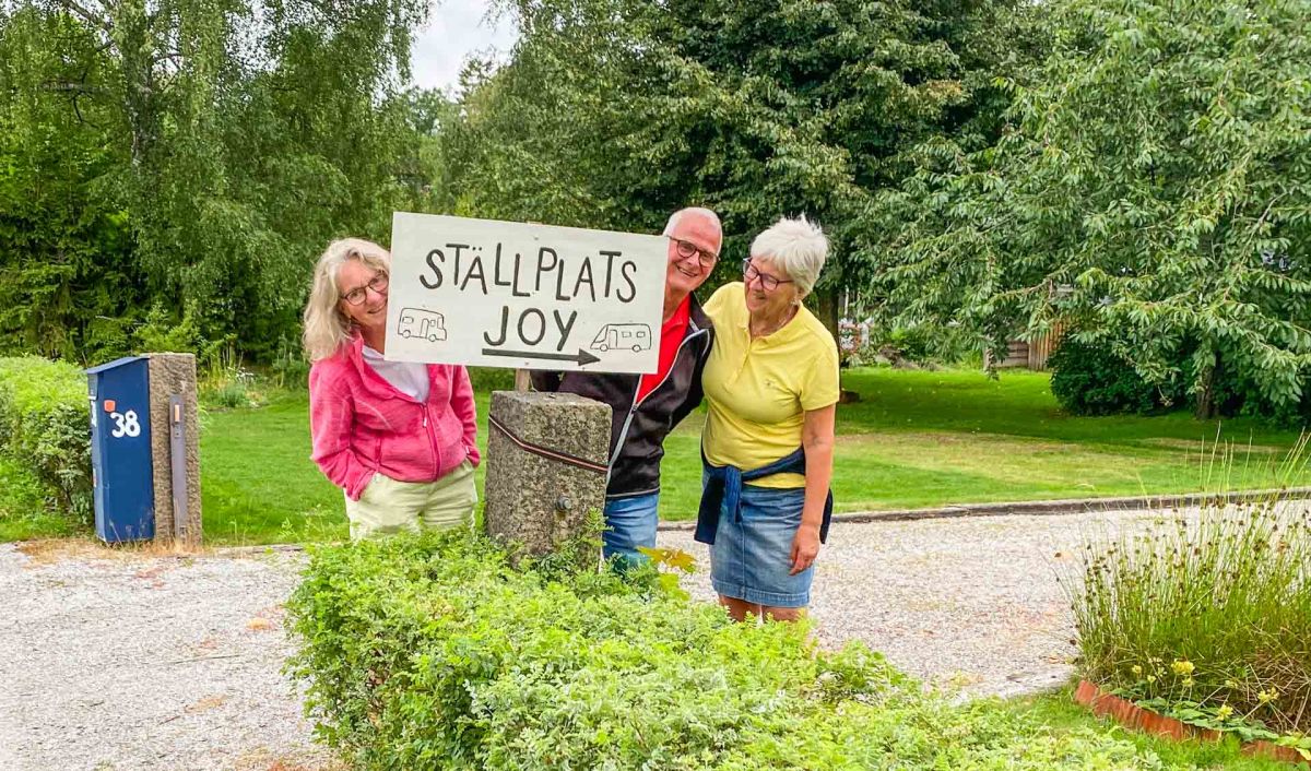 När vi lämnade Gävle på lördagsmorgonen hade vi lantisar ställt in Google Maps på Tyresö och hoppades vi skulle slippa bli inlurade i de centrala delarna av Stockholm. Det gick kanonbra så efter ett par timmar närmade vi oss Yvonne och Jakobs hus och vilken lyx! Bara att backa in på ”Ställplats JoY”.