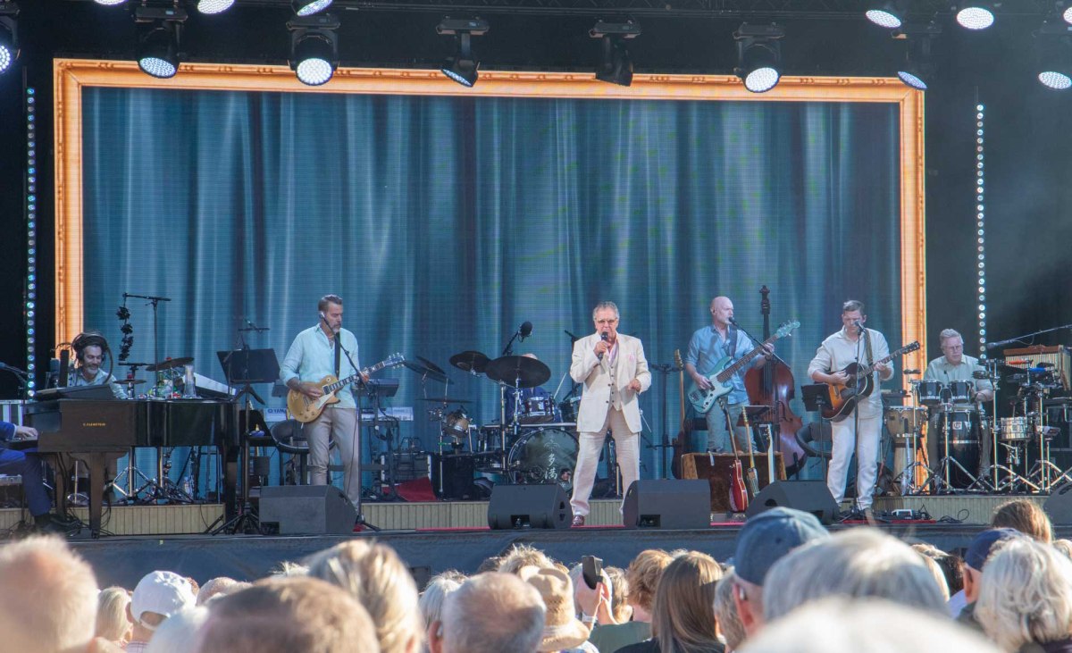 På kvällen tar vi cyklarna dit igen och trots en liten regnskur när vi står i biljettkön, tillsammans med 2500 andra, får vi sedan en underbar kväll. Vi tycker att Tommy Körberg är både en gudabenådad sångare och en duktig underhållare med en humoristisk sida, vilken han inte minst fick visa på 70-talet i revy med Hasse & Tage. Vi bjöds på en resumé av hans, över 50 år långa, artistliv och det var verkligen en föreställning värd att vänta ett år på. Dessutom omgavs han av åtta duktiga musiker.