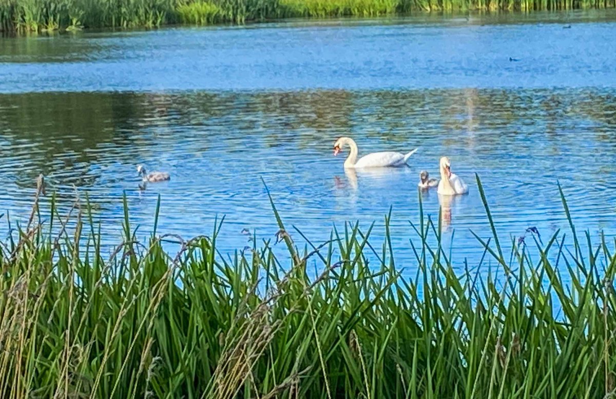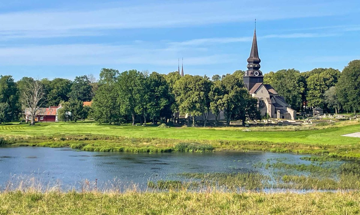 På måndagen var vi bjudna till B-M:s f d grannar i Varnhem på fika och sedan skulle vi ta en promenad för att gå en Lab Cache runda borta vid kyrkan, för att visa dem hur det fungerar. Vi gick den som går runt den nyanlagda Klostersjön.