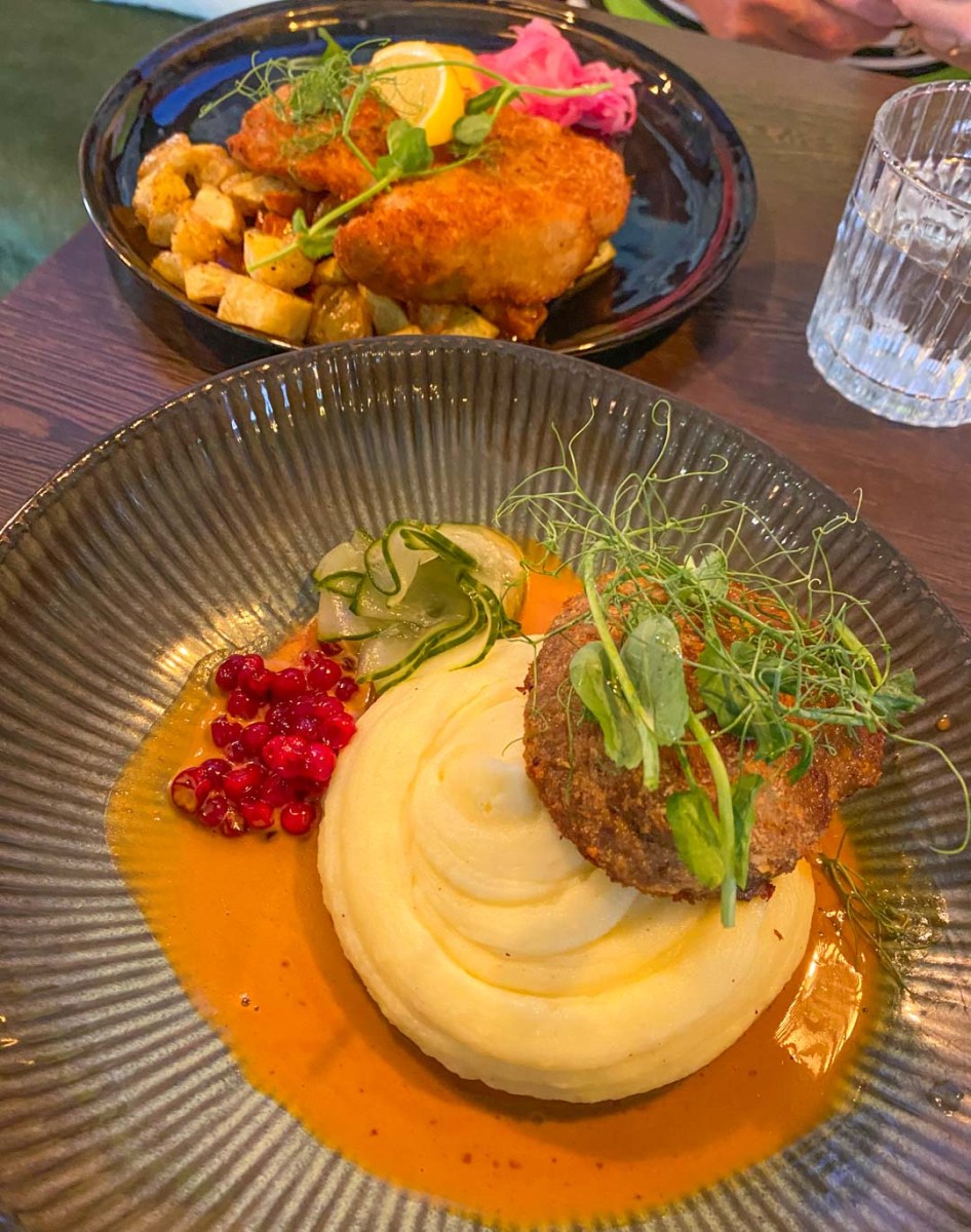 Nu var det hög tid för lunch och eftersom vi har 0 koll på restaurangutbudet i Borås gick vi in till ”Hemma hos Linda”. Där blev vi mätta och belåtna på en schnitzel resp biff på viltfärs och det smakade riktigt bra.