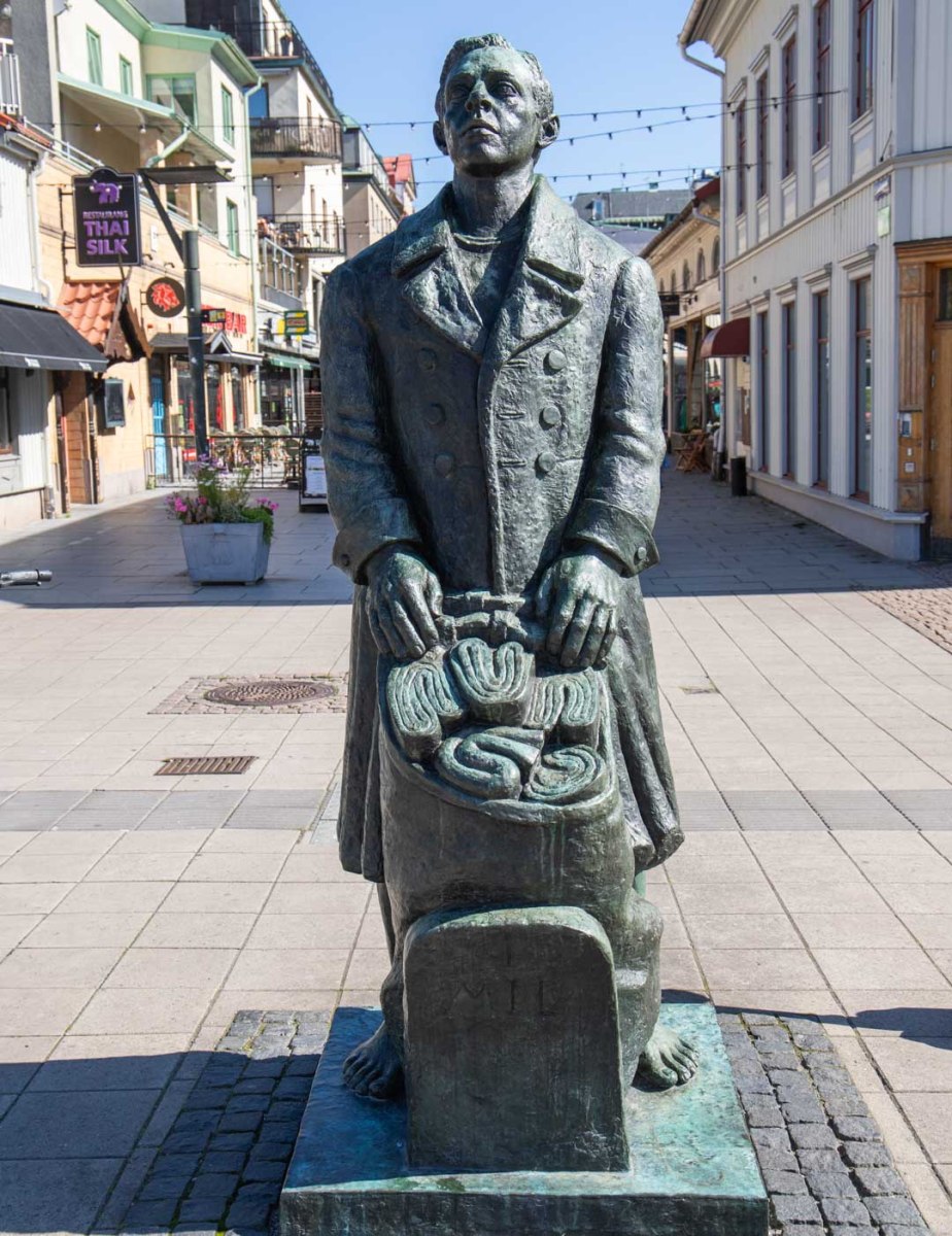 Innan vi kom tillbaka till parkeringen vid resecentrum passerade vi en annan av Borås kändisar, nämligen ”Knallen”. Den här har stått här sedan 1948 och konstnären heter Arvid Knöppel.