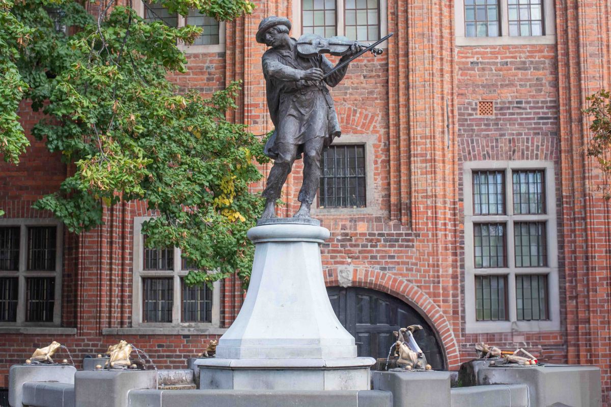Det finns också en grodfontän med en fiolspelande man i. Det finns en legend om en flottare som spelade på sin fiol så att alla grodor som gjorde livet besvärligt för invånarna i staden följde efter honom ut ur Torun.
