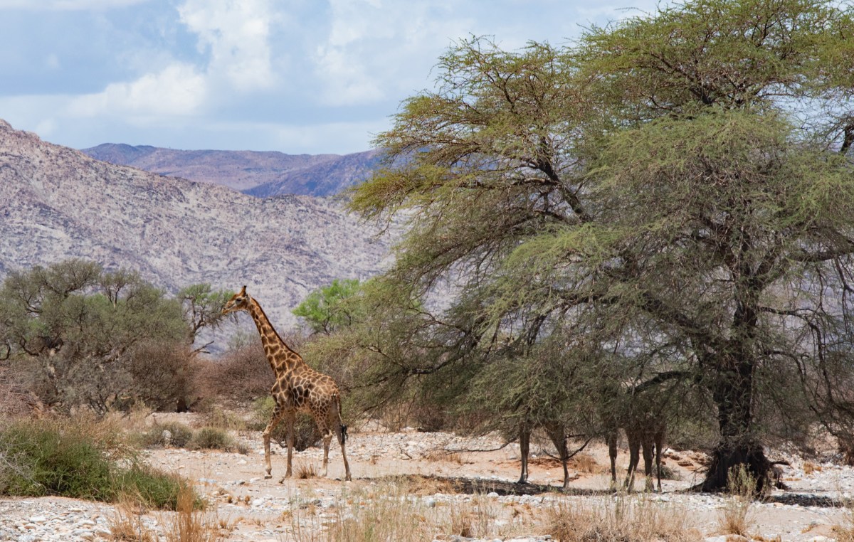 Dagens mål är Namib Desert Lodge i Sesriem. Längs vägen ser vi oryx antiloper, eller gemsbock, som den också kallas. Den brukar sägas vara Namibias nationaldjur och finns avbildad i landets vapensköld. Dessutom ser vi resans första giraffer. Även om de stod långt bort och tuggade så är det lite speciellt att se dem så här i det fria och inte i något naturreservat.