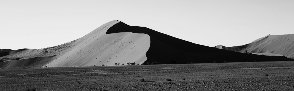Efter ytterligare några km på sandvägar kommer vi fram till platsen där det är dags att börja gå. Vi delar upp oss i två grupper. Den ena som Lars går med, går upp för den stora sanddynen, kallad Big Daddy, som är över 370 meter hög, för att sedan komma ner från krönet till Deadvlei.