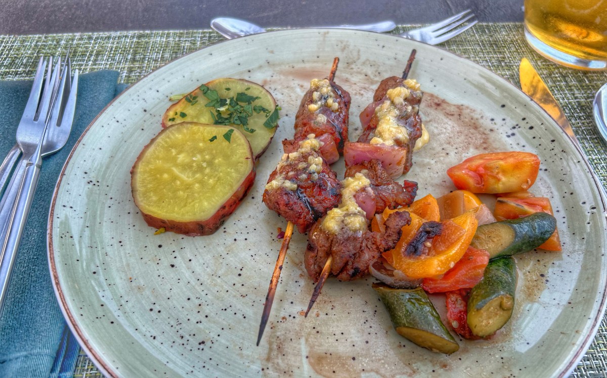 På kvällen serverades en smakfull buffé under Afrikas svarta, stjärnbeströdda himmel, med olika kött- och fiskrätter, samt rikligt med grönsaker, goda ostar mm. Denna första kväll blev favoriten grillspett på springbock med ett kraftigt vitlökssmör.