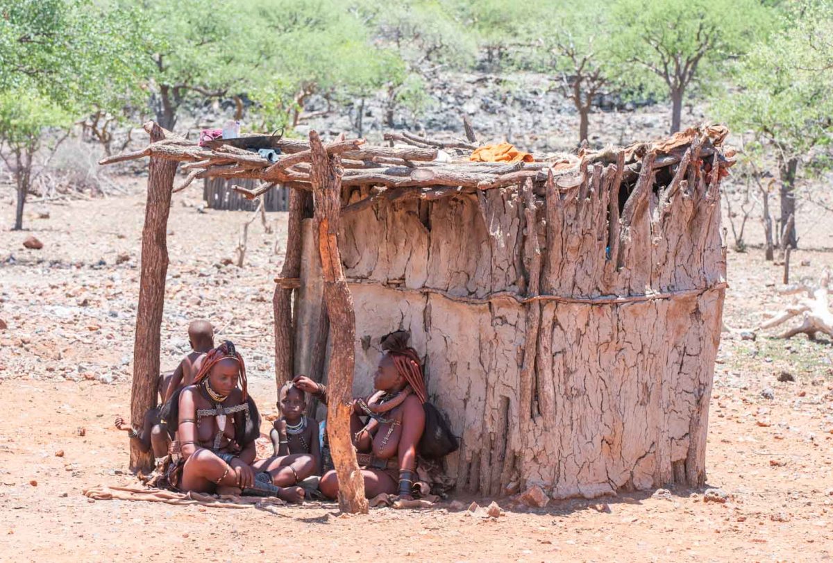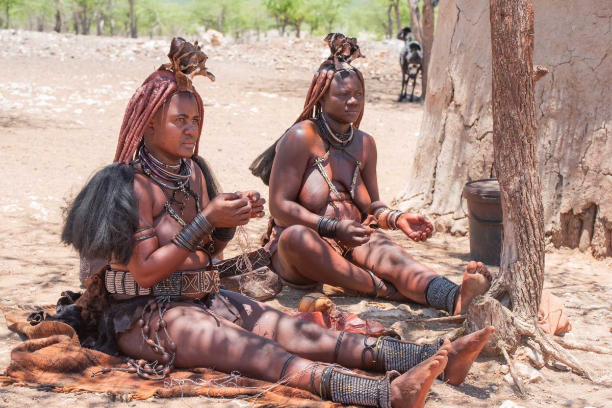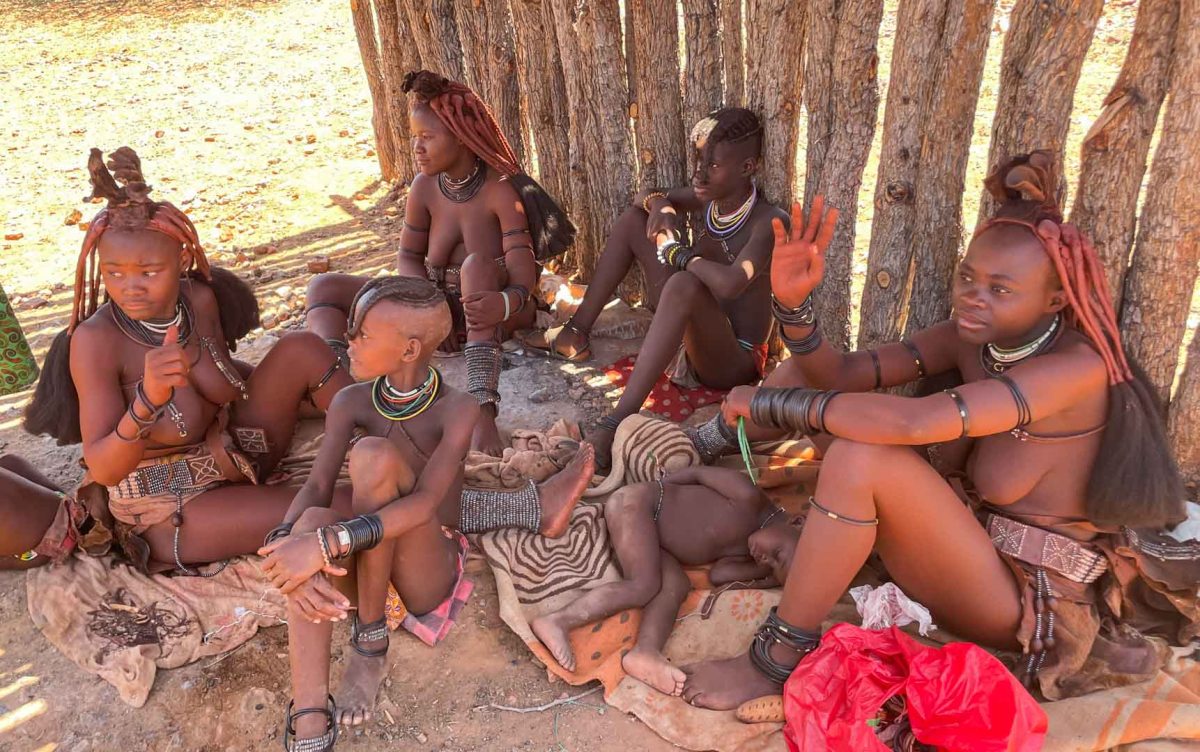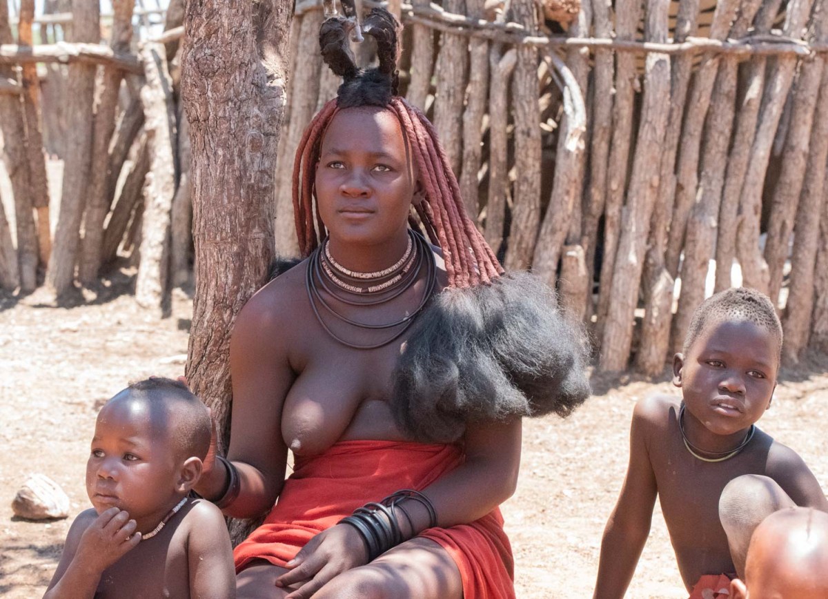 Himbakvinnorna är kända för sina otroliga frisyrer och sin minst sagt lätta klädsel. Vi mötte även himbakvinnor på gatorna i Swakopmund som gick klädda i höftskynken och vackra smycken men barbröstade. Det kändes verkligen lite konstigt. Sedan får jag erkänna att det inte kändes helt ok när vi kom här i byn med kameror och förevigade dem, även om vi visste att det här var det sätt de levde på och att vårt och andra turisters besök gav dem en inkomst som de kan leva på.