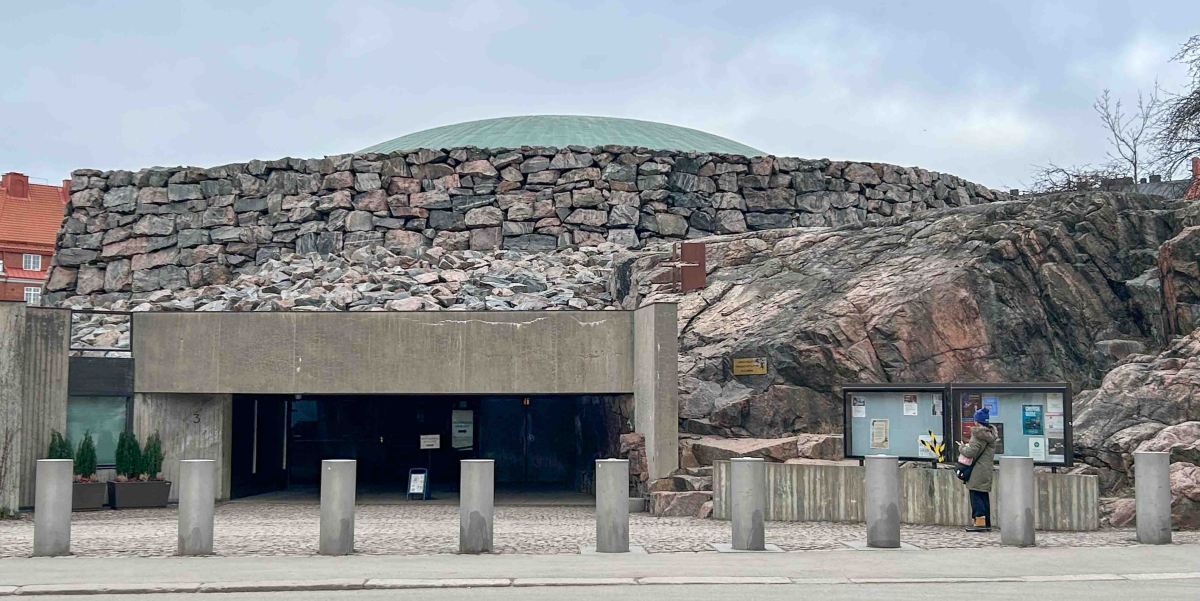 Vi startade med att gå upp till Tempelplatsens kyrka och när vi närmade oss den såg det mest ut som ett flygande tefat, eftersom kyrkan är insprängd i berget och endast det runda koppartaket syns ovan jord. Det var meningen att det skulle byggas en kyrka här redan på 1930-talet men kriget satte stopp för bygget och den här byggnaden stod klar 1969. Tempelplatsens kyrka hör till de populäraste sevärdheterna i Helsingfors och besöks årligen av cirka en halv miljon människor. Vi tyckte den var otroligt vacker i sin enkelhet. Hela kyrksalen är insprängd i en stor gammal granitklippa och taket, som sägs bestå av 180 st takfönster, ger den ett otroligt vackert ljus.