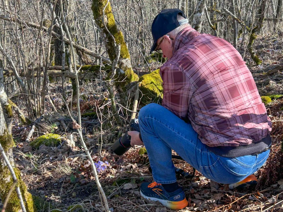 Efter lite mat var det dags att ta den korta promenaden till Munkängarnas naturresevat. Här blommar mängder med blåsippor och här får vi också syn på årets första vitsippor.