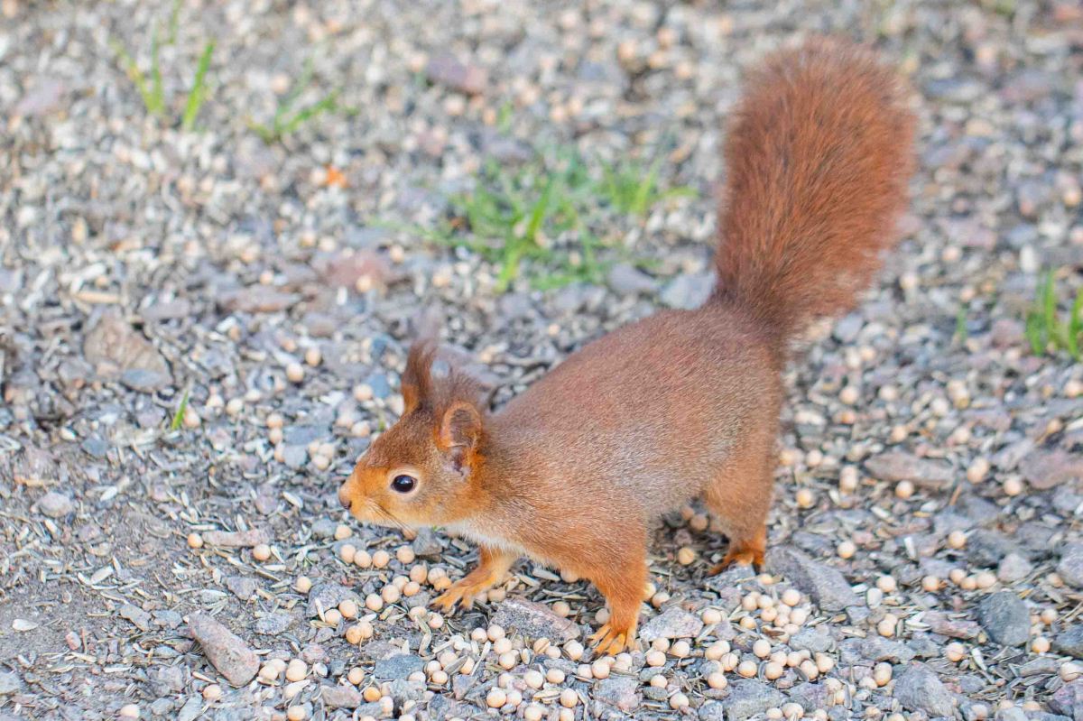 Vid fågelmatningen var det fortfarande en hel del fåglar, bl a en hackspett som kom och försåg sig. Det som var skoj att se var flera små pigga ekorrar som tuggade i sig mängder av de nötter och frön det bjöds på.