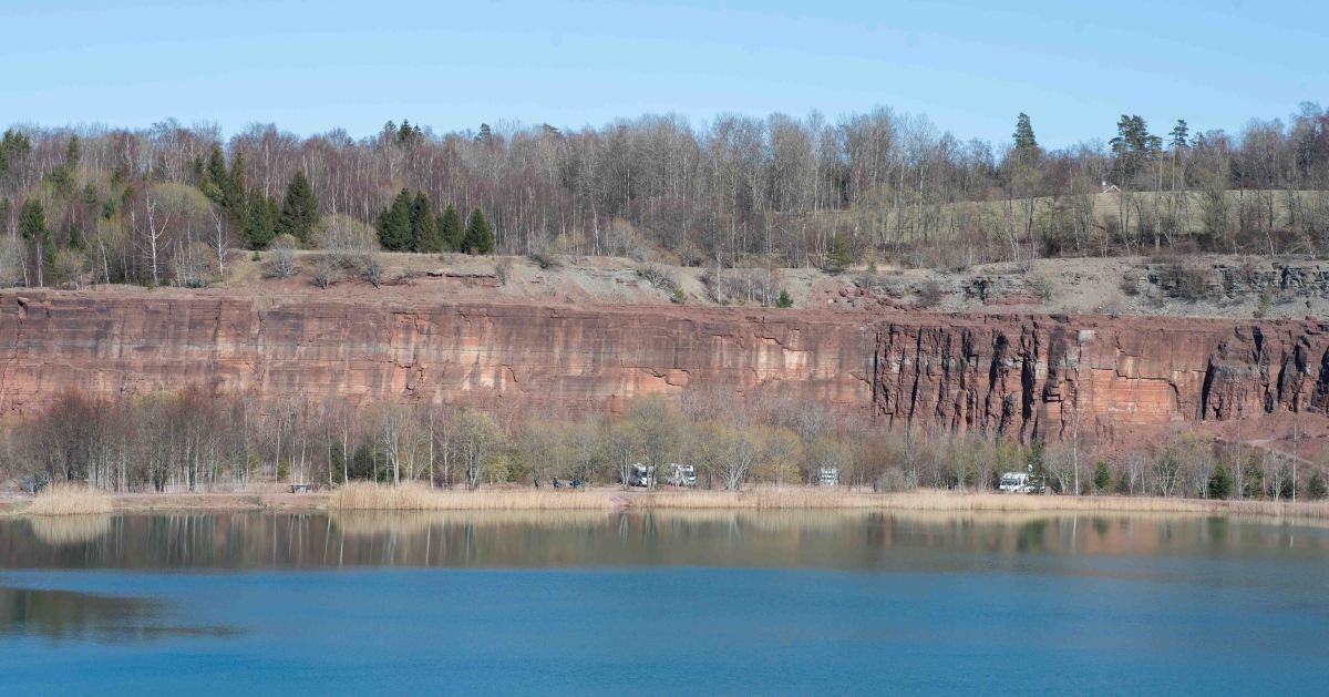 Vid lunch åkte vi vidare till nästa favoritställe, nämligen Stenbrottet på Kinnekulle. Det är verkligen ett härligt ställe att stå med husbilen. Servicen består i princip av en sopcontainer och kostnaden är en frivillig avgift på 100 kr. Den summan swishar vi gärna för att få behålla möjligheten att få övernatta här. vi känner oss nästan som i Vilda Västern när vi blickar upp mot bergssidorna som omger brottet och lokalt kallas också platsen för ”Lilla Grand Canyon”.