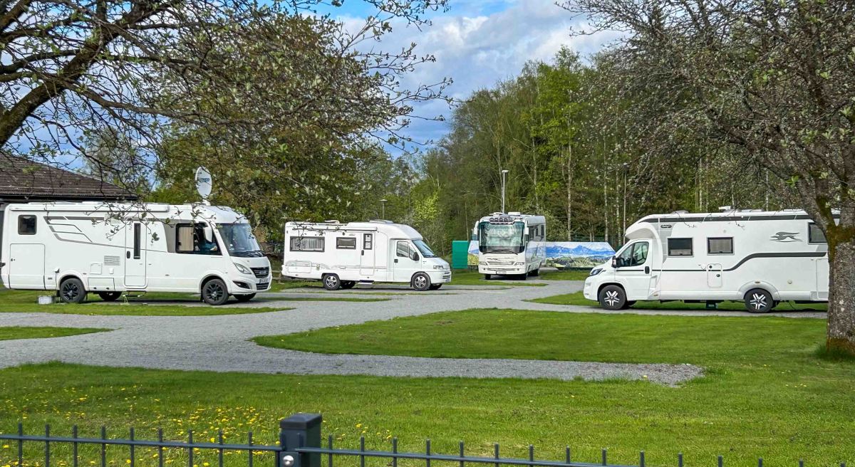 Efter ett par dagar i hemmatrakterna kände vi att det skulle vara skönt att komma iväg över Valborg och 1:a maj.Vi bokade plats på Kattugglans ställplats några km söder om Ljungby. Den här ställplatsen har vi hört mycket positivt om i sociala medier. Här vid gamla E4:an/Riksettan låg motellet Rattugglan (samma namn som motellet utanför Mariestad). Själva restaurangdelen brann 1997, bensinpumparna har försvunnit och på den sidan om vägen finns nu 6 ställplatser med el, tömning, fyllning, utedisk, sopor samt toalett och dusch.