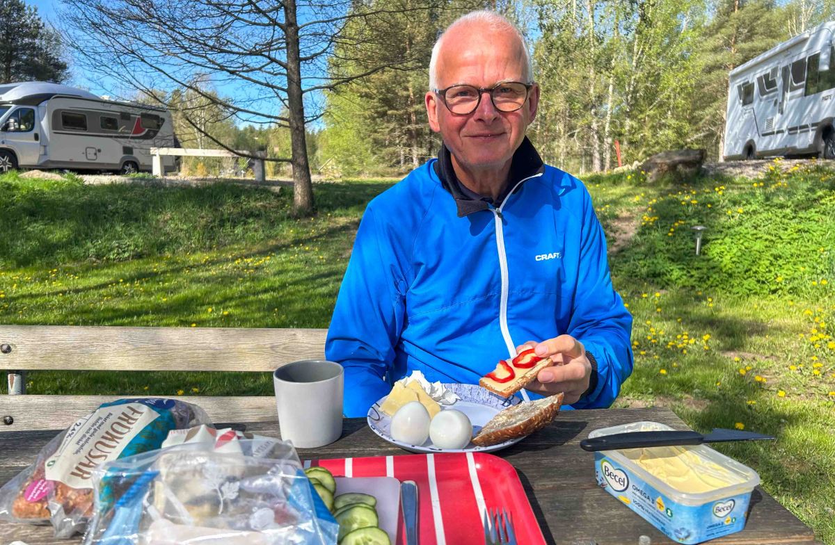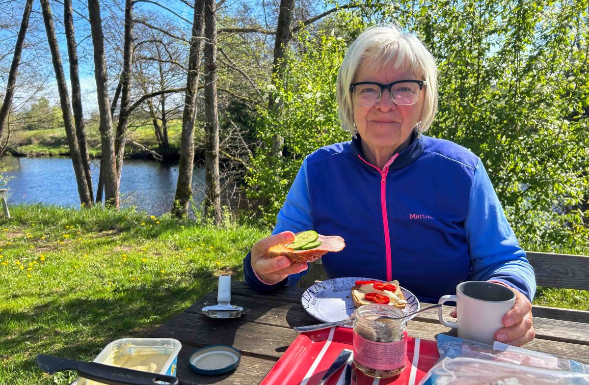 1:a maj vaknade vi till en otrolig fågelsång, värme och en strålande sol. Vi bar med oss frukostbrickan till ett av borden nere vid vattnet och här gjorde vi oss ingen brådska. Det var verkligen njutbart att sitta här i grönskan och nu hoppas vi få många liknande morgnar framöver…