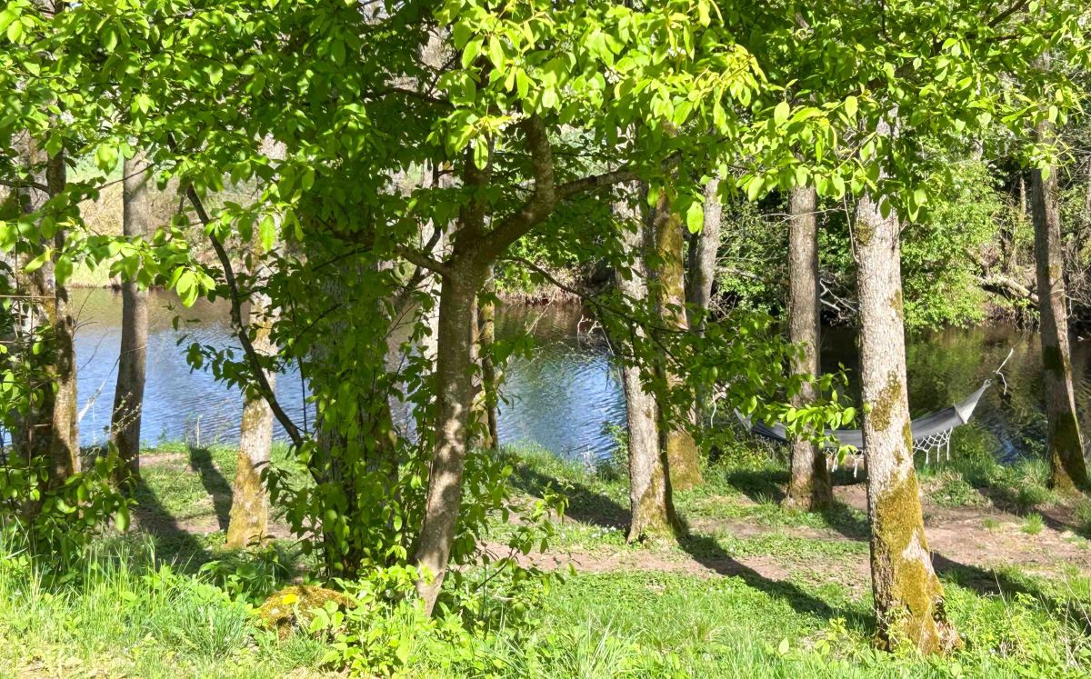 På andra sidan vägen finns 13 ställplatser utan el som ligger otroligt naturskönt längs Lagan. Det är verkligen mysigt med grillplatser, med ved, picknickbord och hängmattor mellan träden.