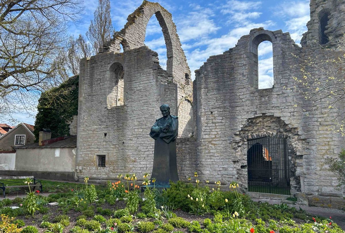 På väg till Botaniska trädgården går vi förbi Drottens kyrkoruin med en liten fin park framför. Där står uppfinnaren Chrisopher Polhem, staty. Han föddes på Gotland på 1600-talet och uppfann bl a hänglåset.