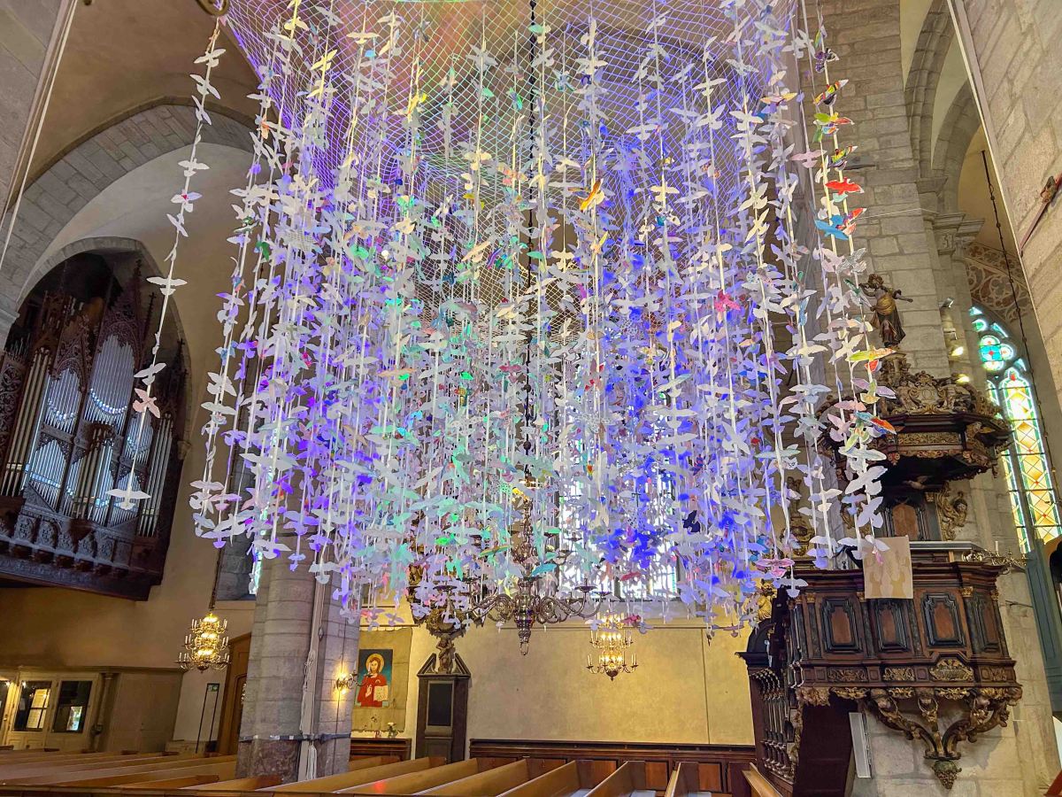 Under kyrkans valv svävar nu tusentals fredsduvor, som bär budskap om fred, hopp och kärlek.