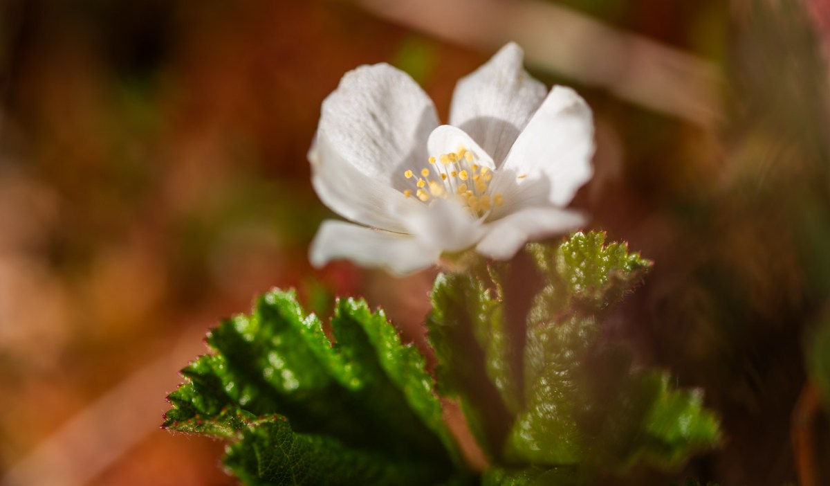 Nu ser vi de späda bladen och någon blomma, av vad som ska bli mossens gula guld till hösten, naturligtvis hjortron.