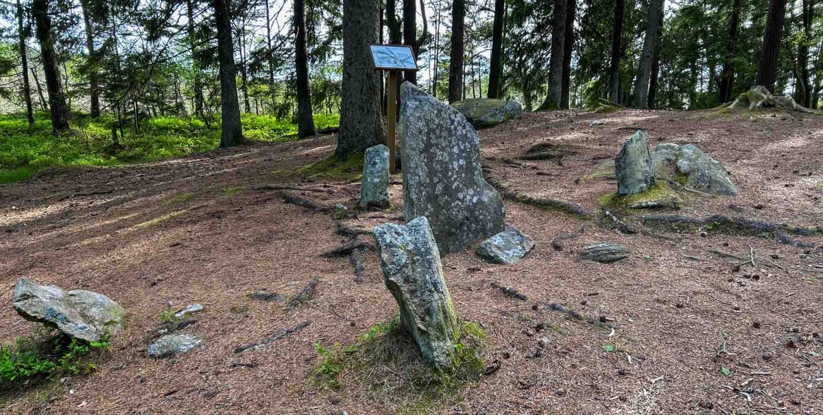 Här finns också en formation med fem stenar. De härstenrösena användes förr som gränsmarkeringar och dessa stenar markerar gränsen mellan Småland och Västergötland. I denna punkt möts också fyra gamla kyrksocknar (Mulseryd, Strängsered, Grönahög och Ölsremma).