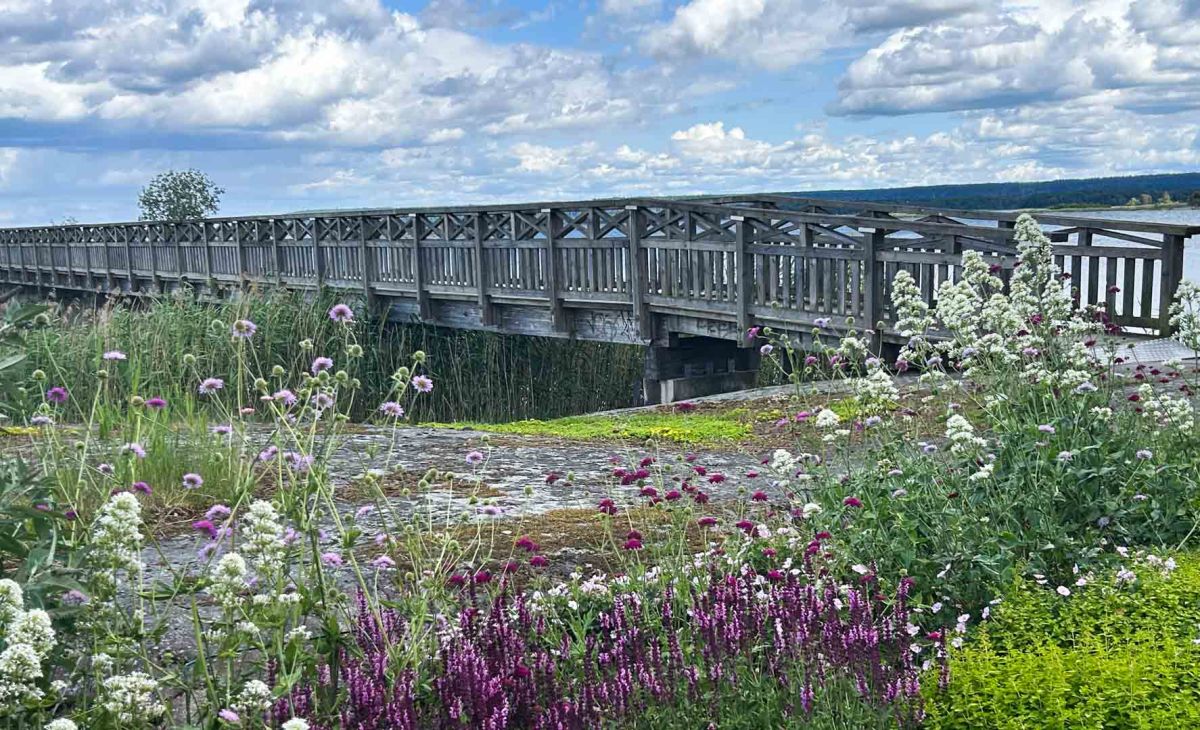 Den här gången valde vi istället en promenad ut till Skräckleparken eller Skräcklan, som ligger på en udde mot Vänern. Här kan man följa en strandnära promenad, kallad Birger Sjöbergs väg, och i parken finns förutom vackra planteringar, flera badplatser, en populär lekplats, kajakuthyrning och en sommaröppen kaffeservering.