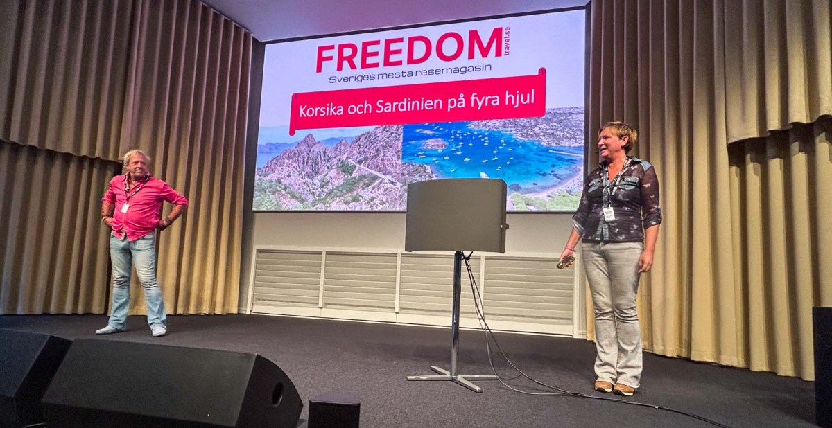 Sedan var det åter Helena och Peters tur att ta scenen i besittning och de pratade om ”Korsika och Sardinien på fyra hjul”, ett lämpligt ämne då de kom direkt till Elmia från en husbilsresa på de här båda öarna.