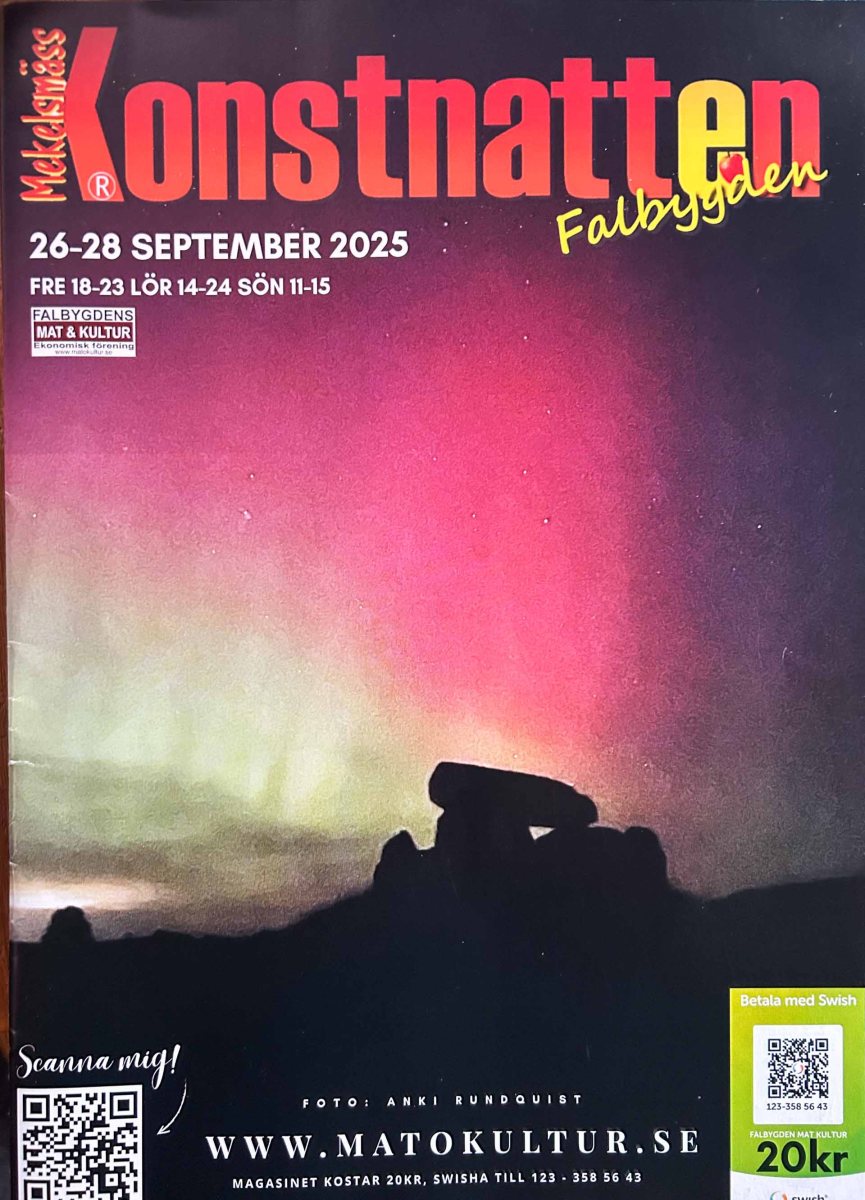Den här helgen är det nämligen Mekelsmäss/Konstnatten på Falbygden. Det är Falbygdens Mat och Kultur som i 26 år har anordnat detta tillsammans med alla aktörer och besökare.