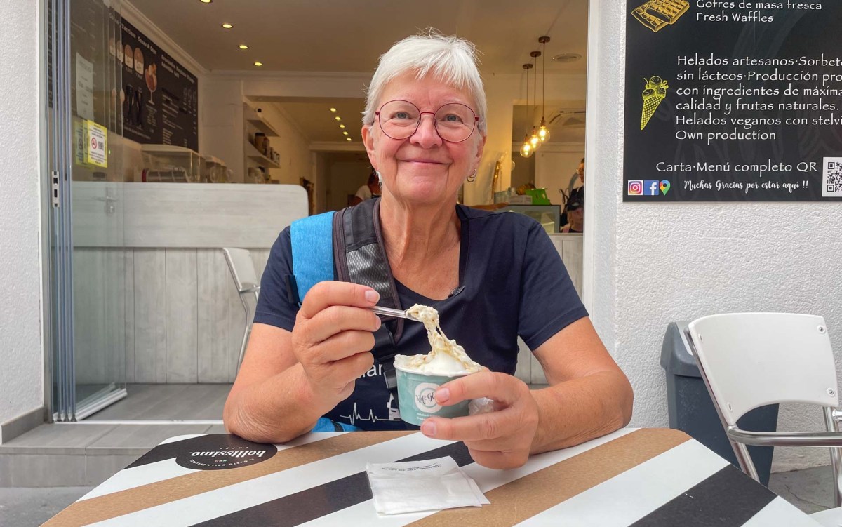 Nu är det ändå så väl att har man gått mycket uppför så bör det någon gång bära nedåt och så blir det när vi tar sikte på vattnet och strandpromenaden. Här blir det först en glasspaus innan vi når Calpe Promenade som sträcker sig längs stranden Arenal-Bol.